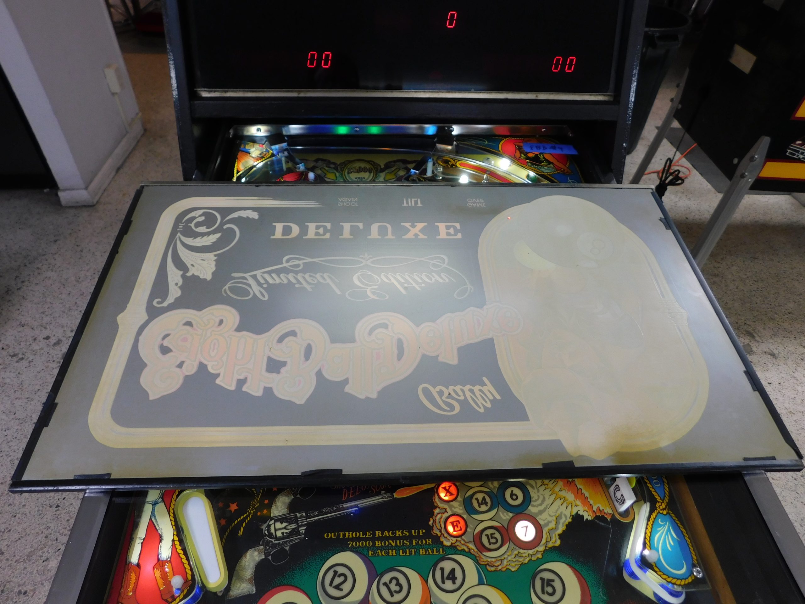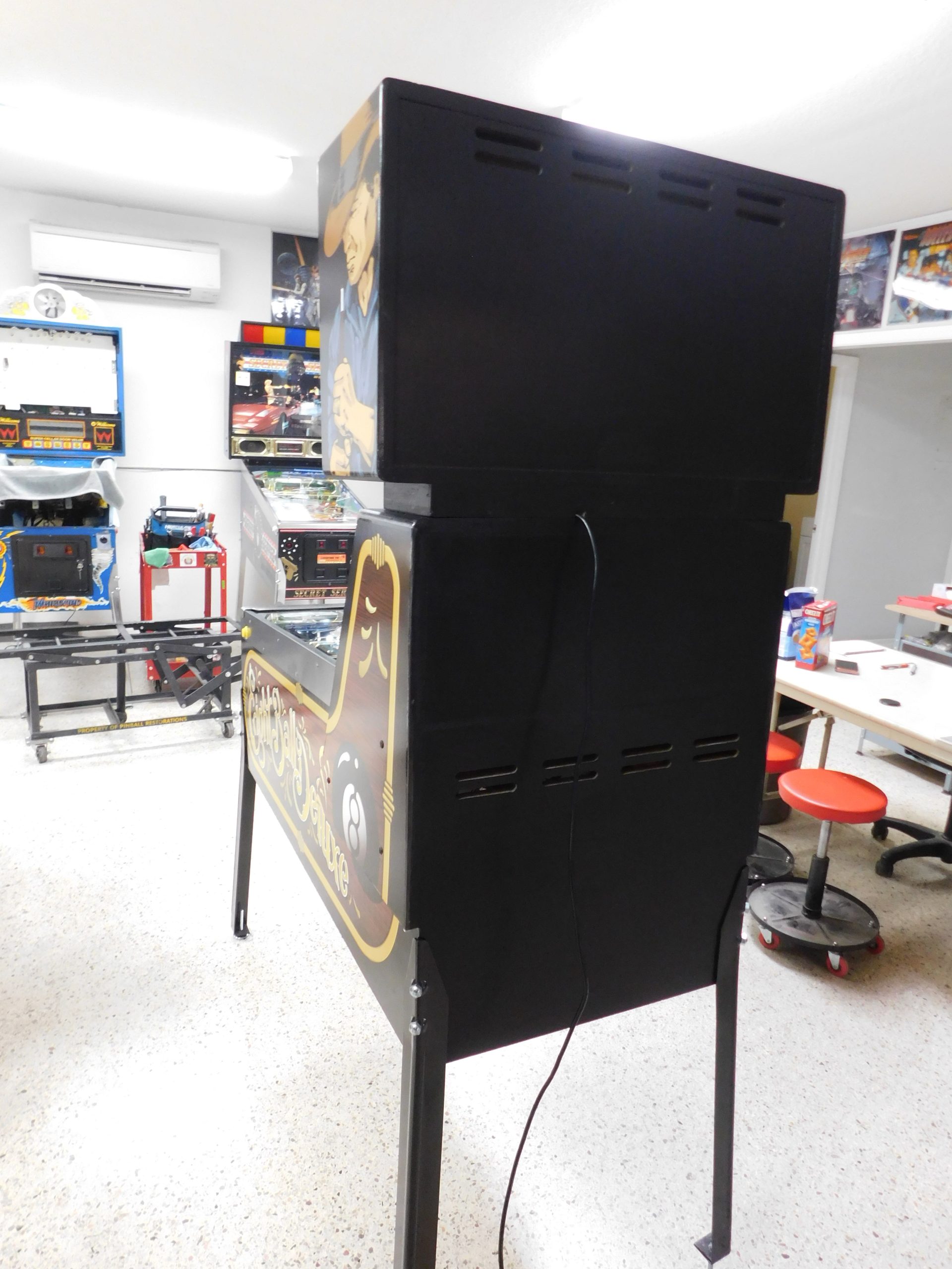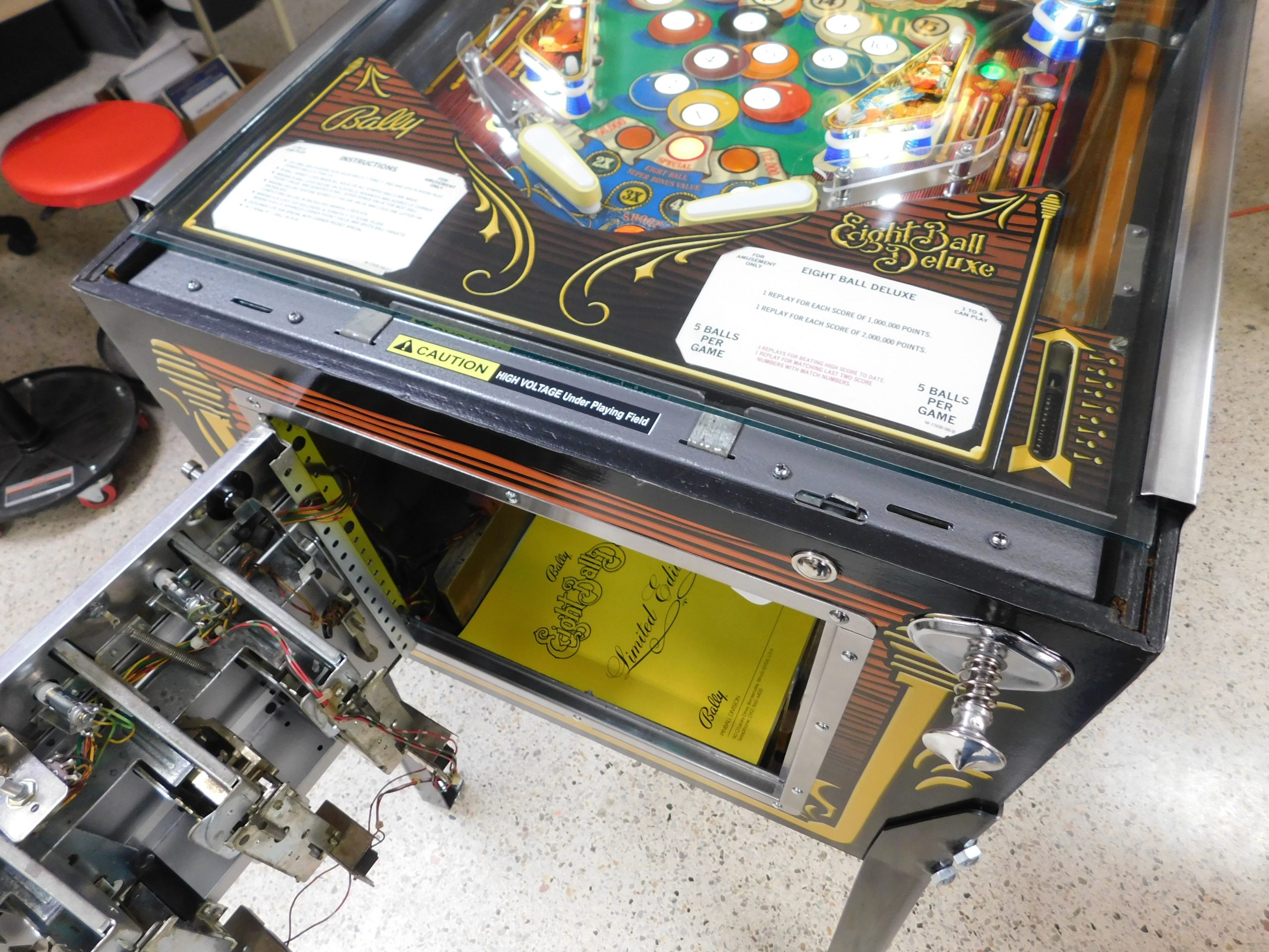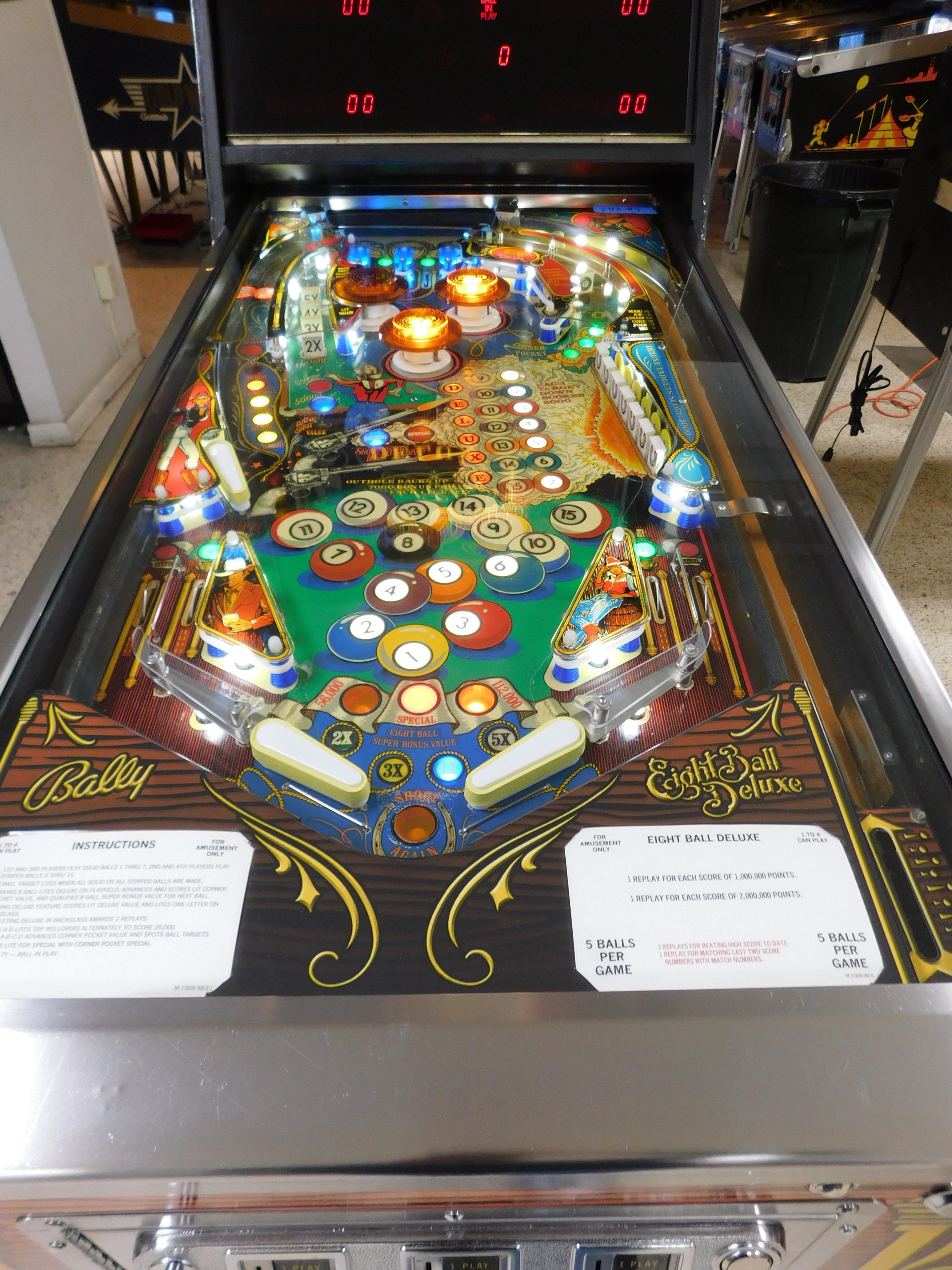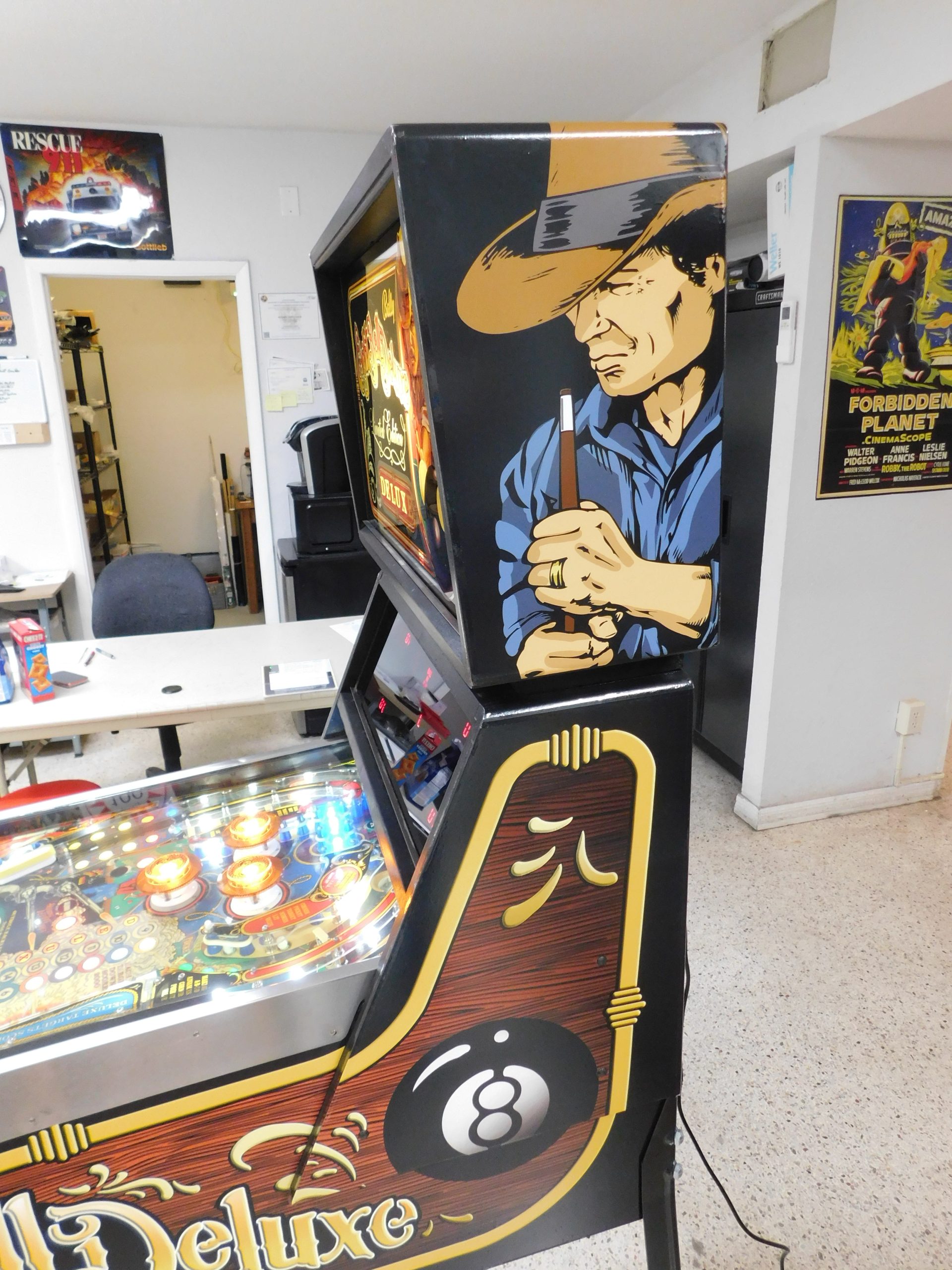 SOLD – 1982 Bally Eight Ball Deluxe – Limited Edition (#9) (Beautiful new CUSTOM cabinet artwork, new Alltek MPU board, new Alltek Solenoid Driver board, new Alltel Auxiliary Lamp Driver board, new playfield glass)