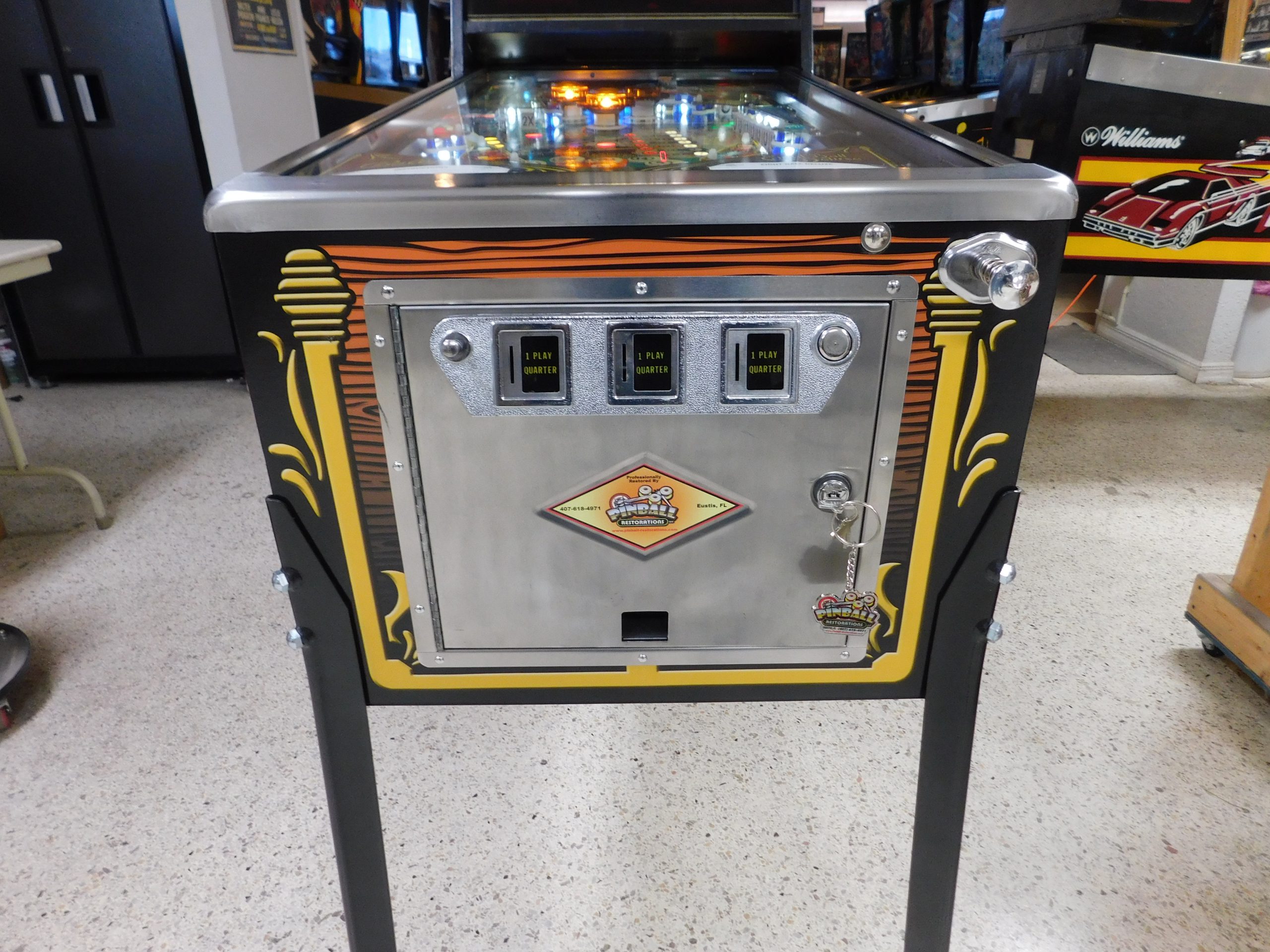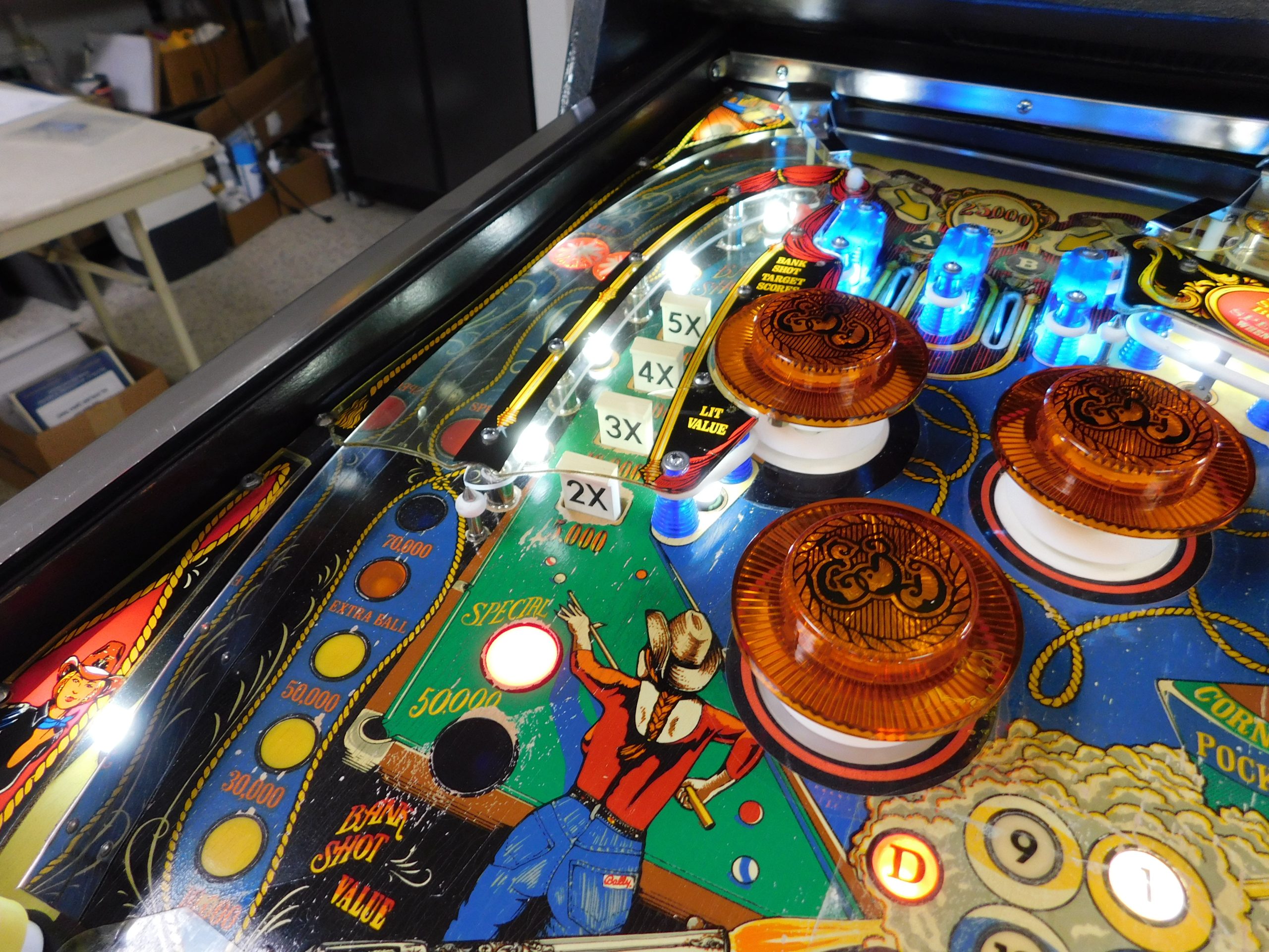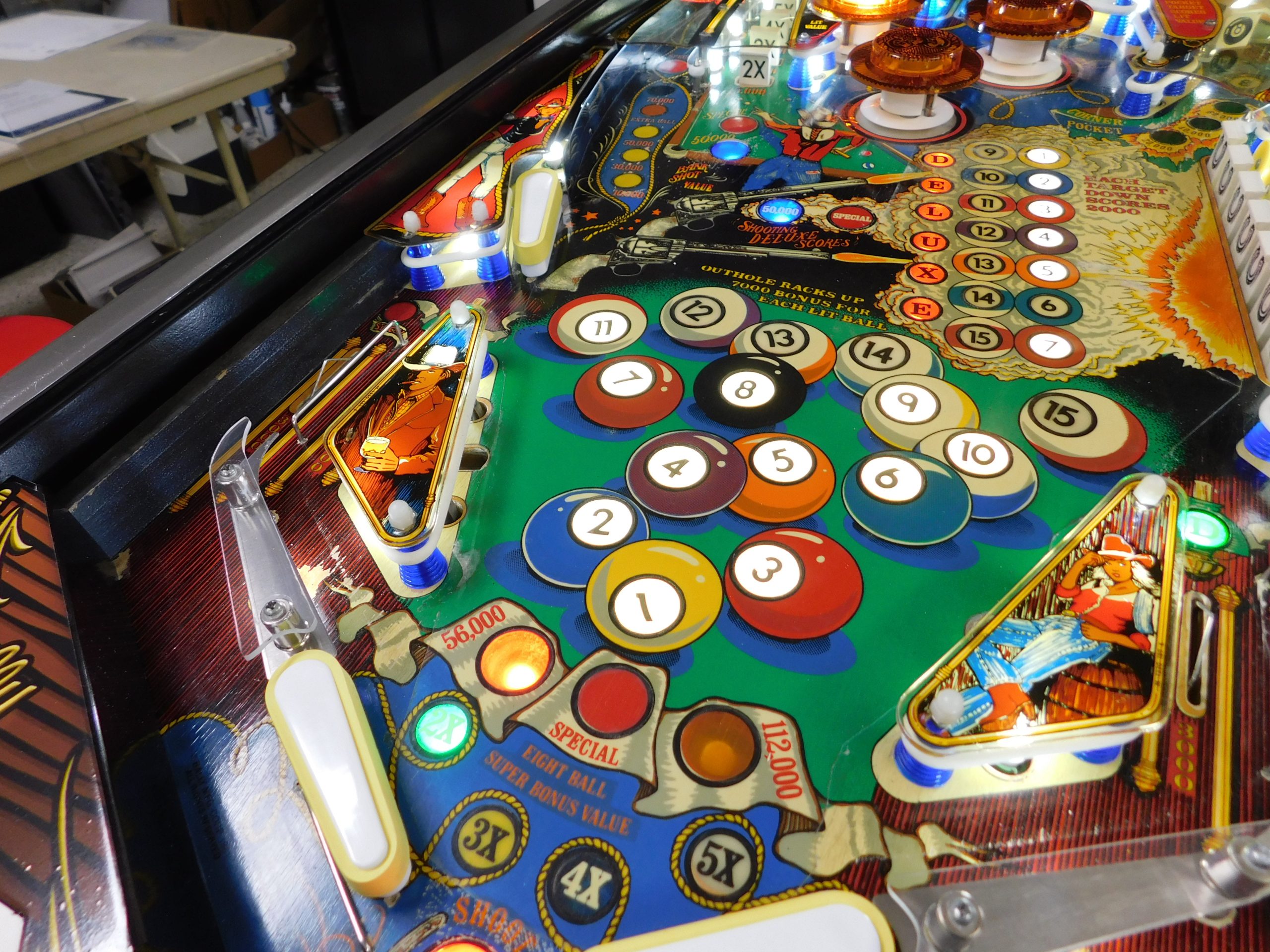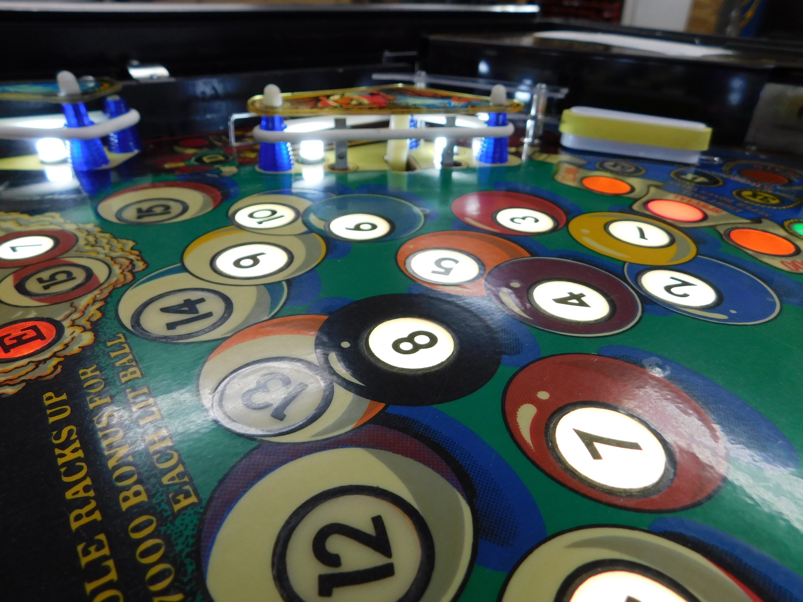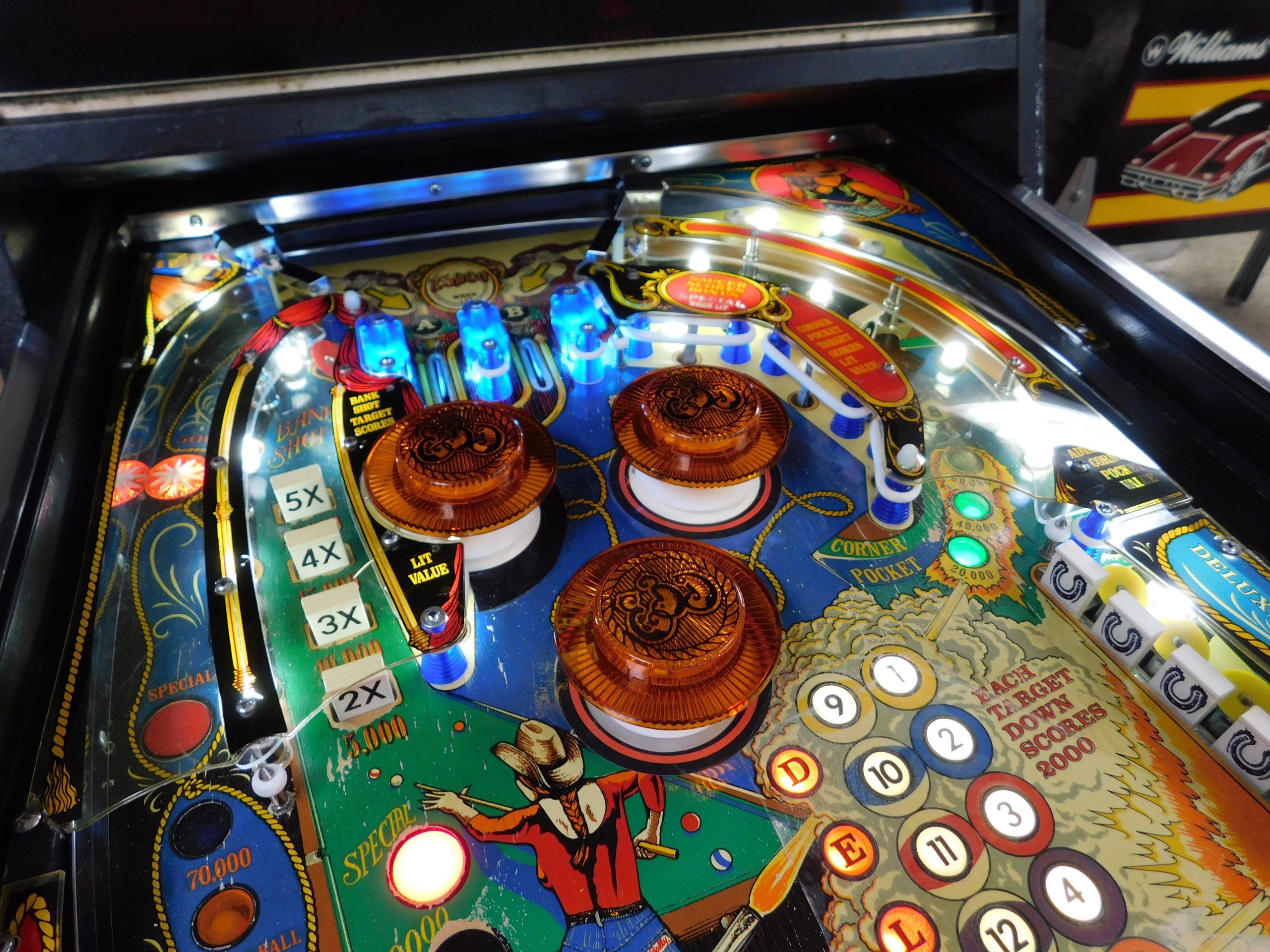 SOLD – 1982 Bally Eight Ball Deluxe – Limited Edition (#9) (Beautiful new CUSTOM cabinet artwork, new Alltek MPU board, new Alltek Solenoid Driver board, new Alltel Auxiliary Lamp Driver board, new playfield glass)