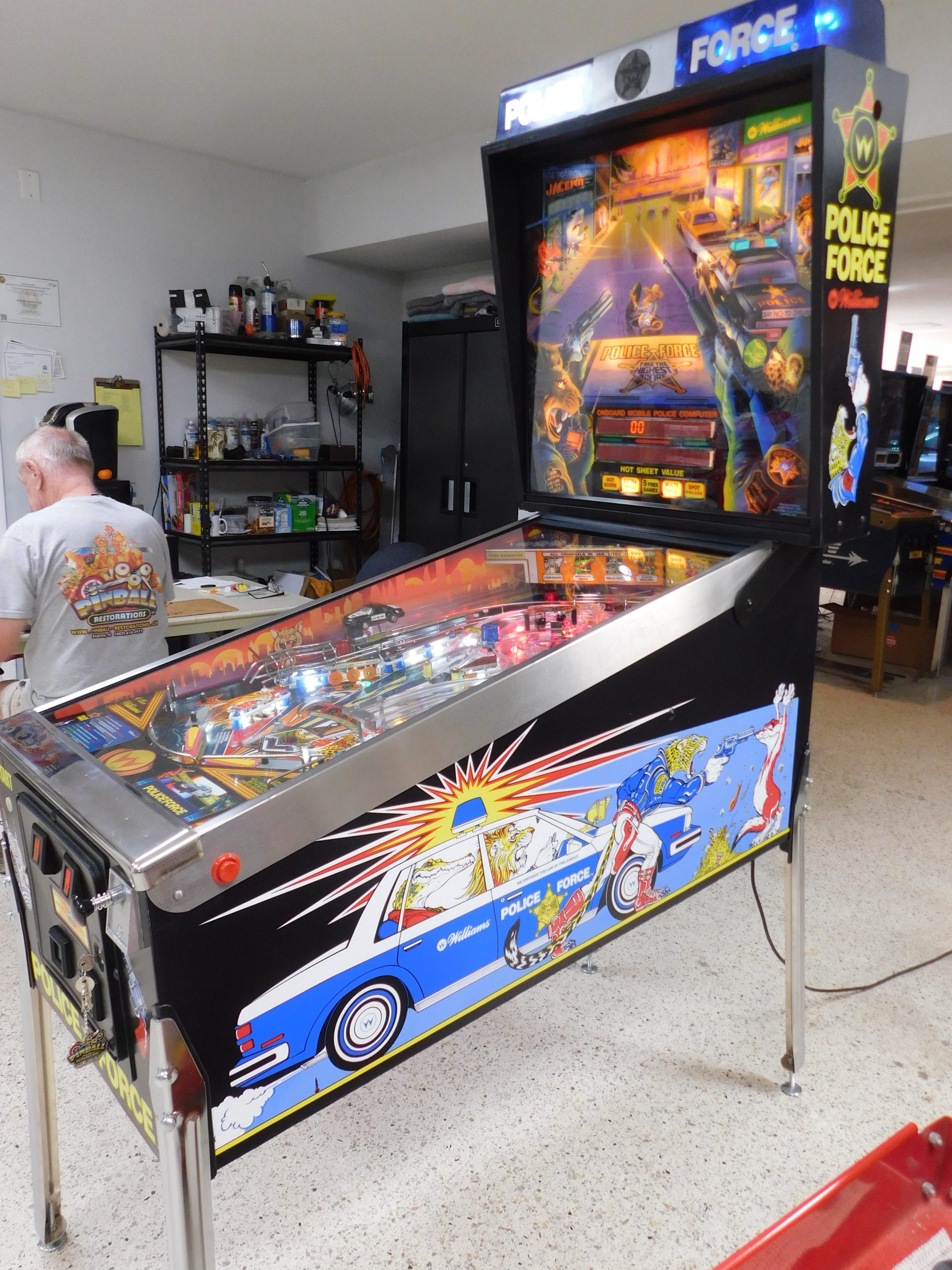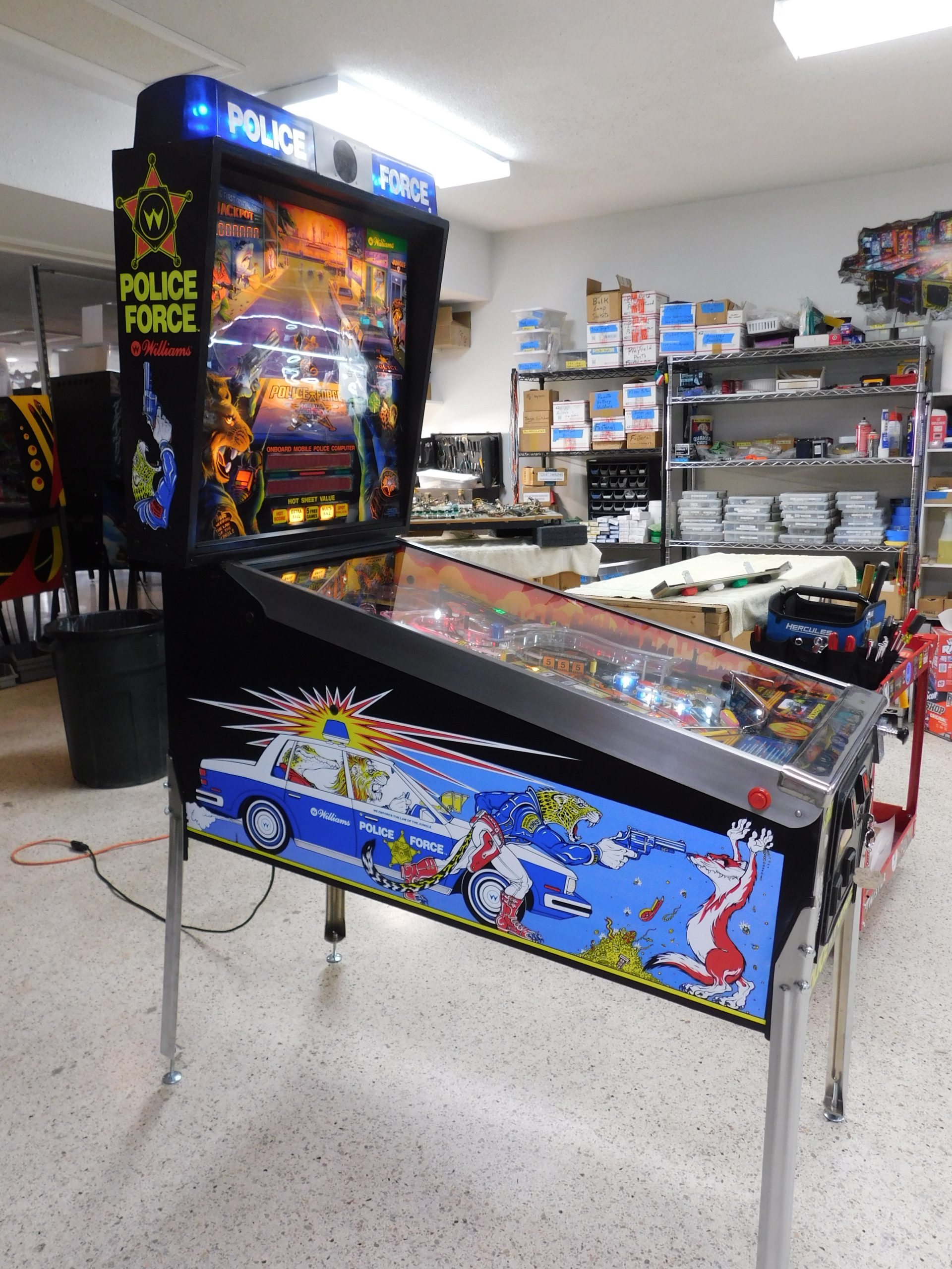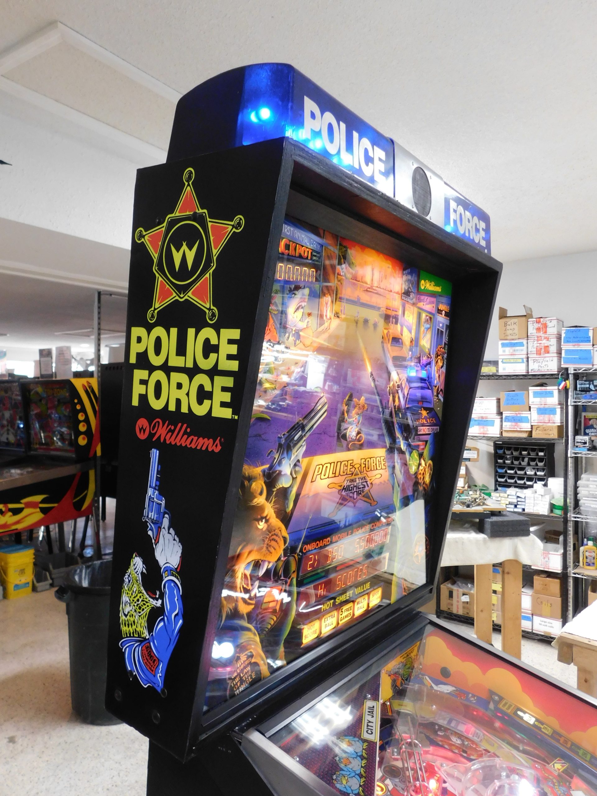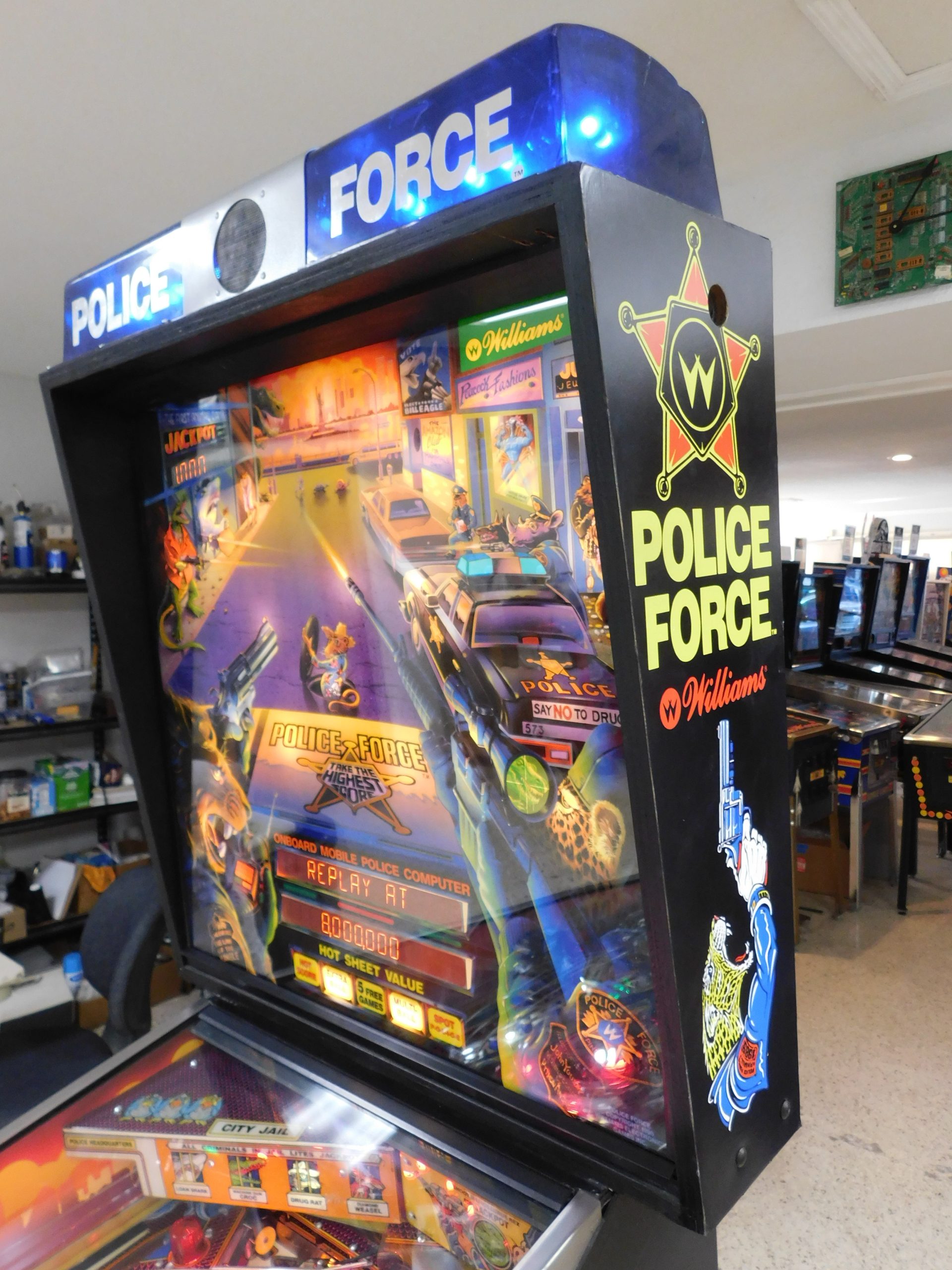 1989 Williams Police Force (#3) (2 ball Multi-ball) (BEAUTIFUL MACHINE) (New cabinet decals, New side art blades, clear-coated playfield, new right side ramp, new translite, new LED Displays)