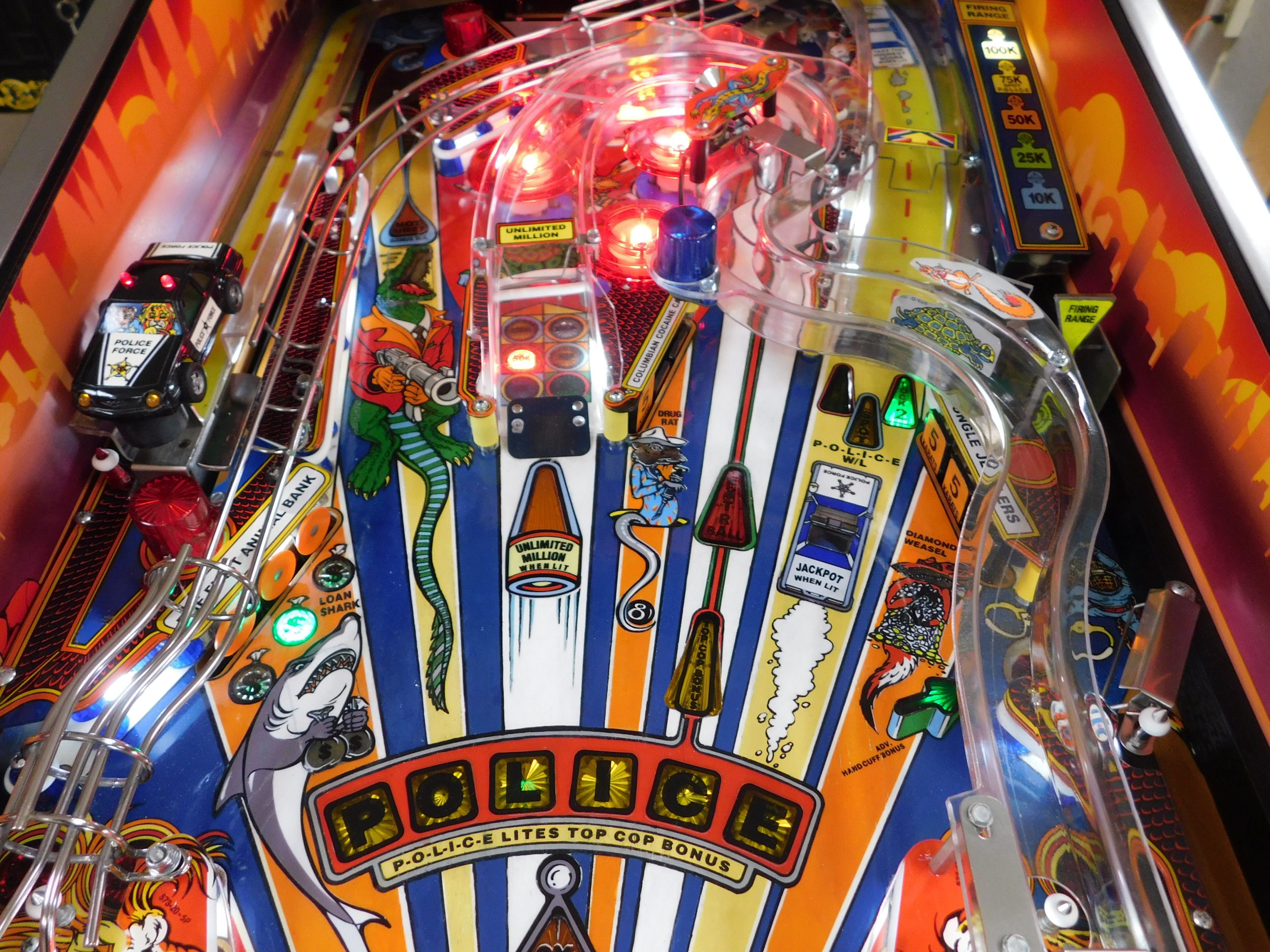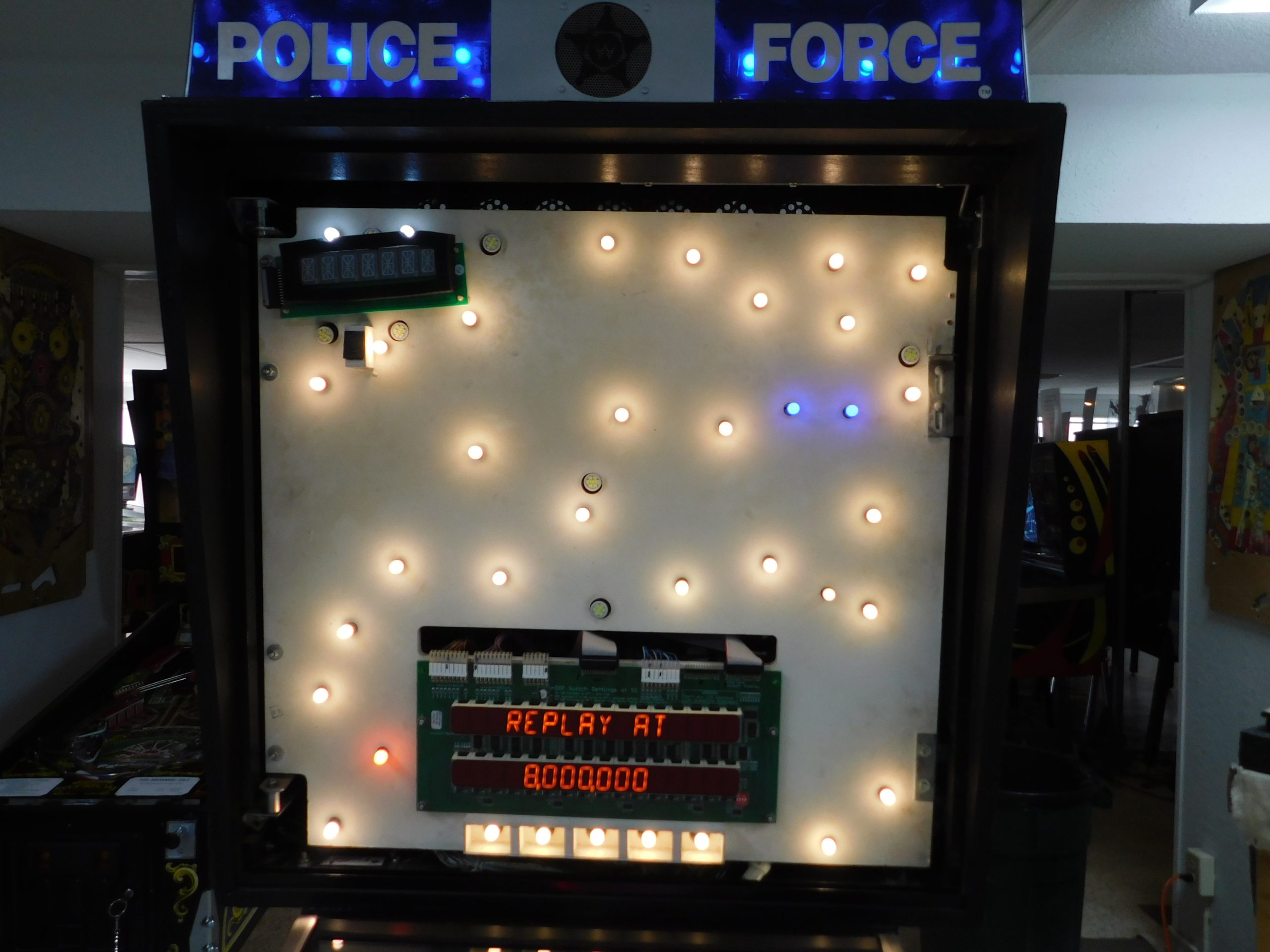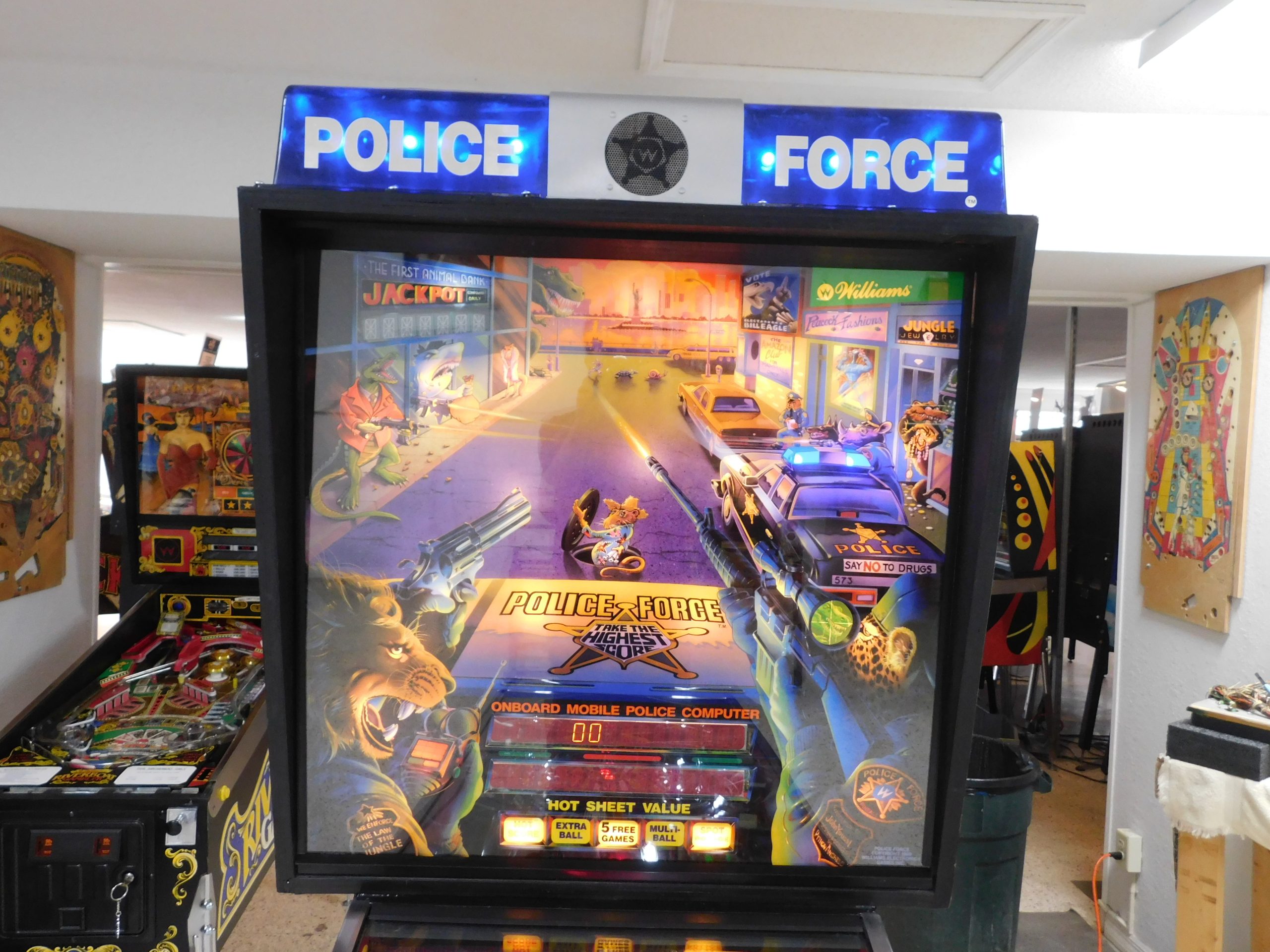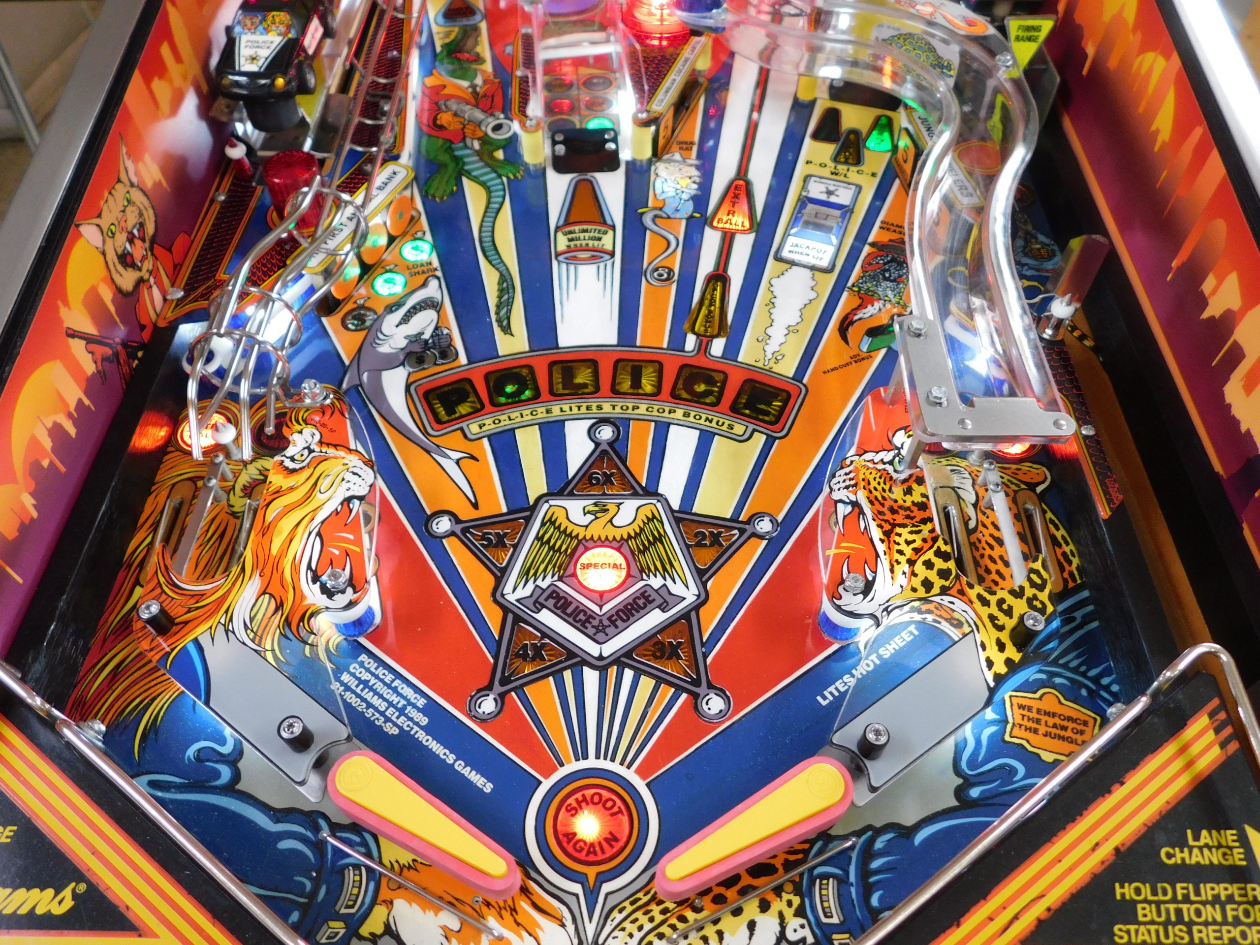1989 Williams Police Force (#3) (2 ball Multi-ball) (BEAUTIFUL MACHINE) (New cabinet decals, New side art blades, clear-coated playfield, new right side ramp, new translite, new LED Displays)