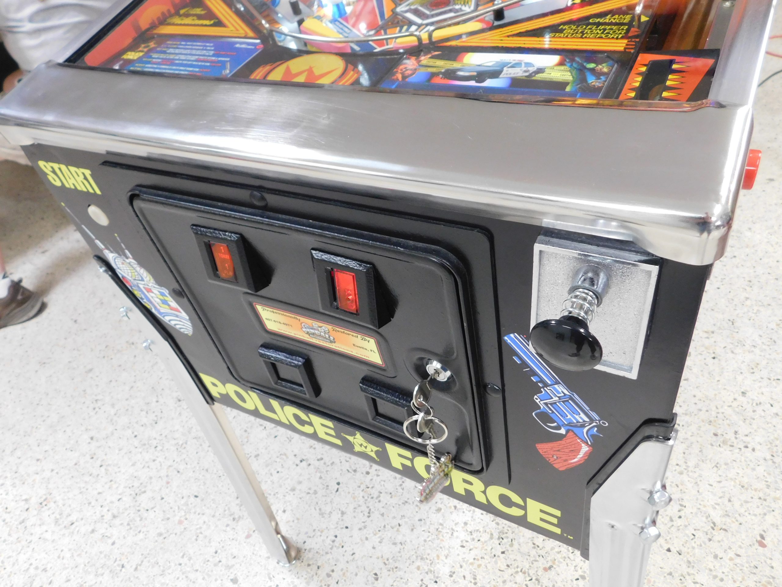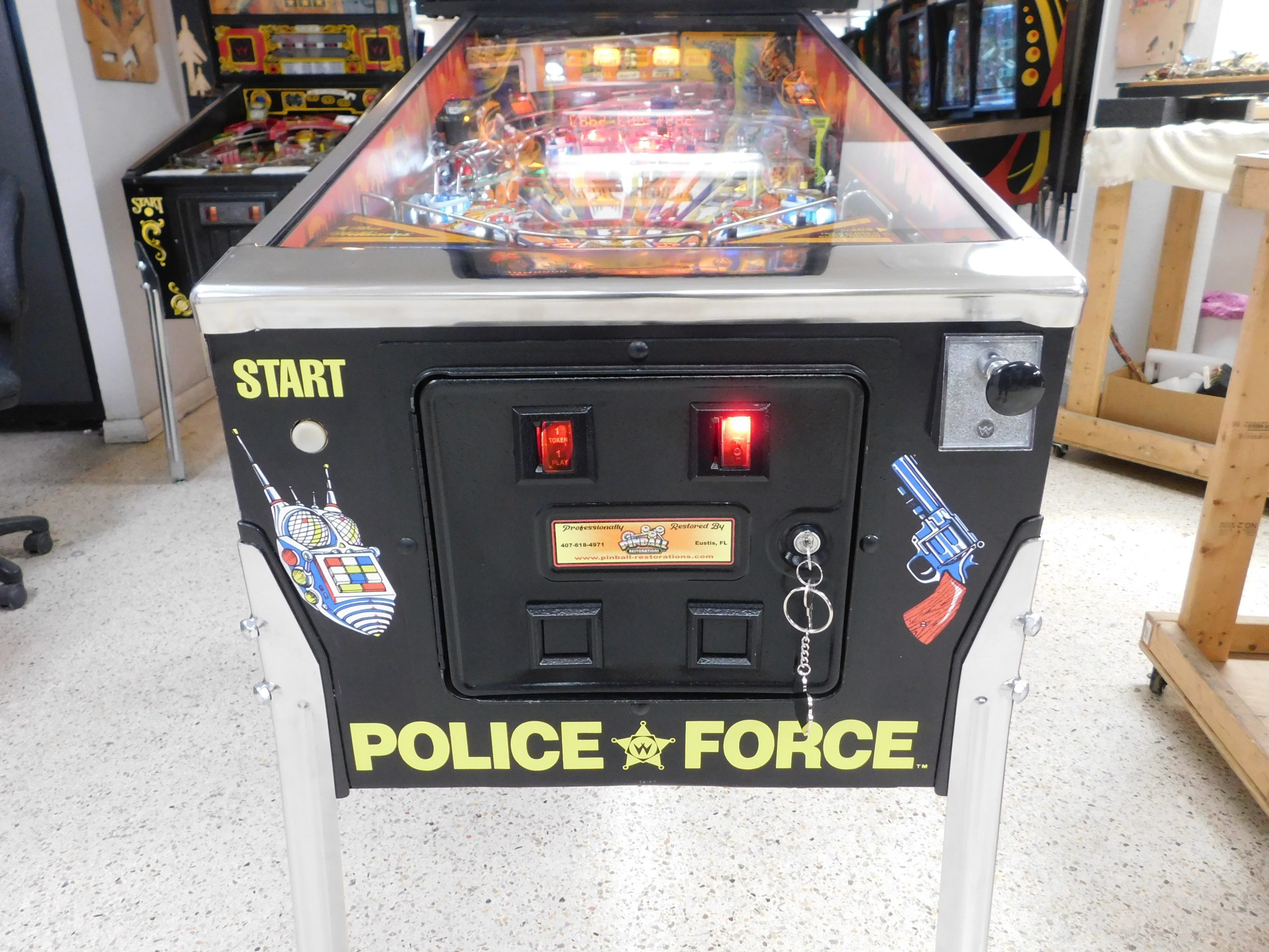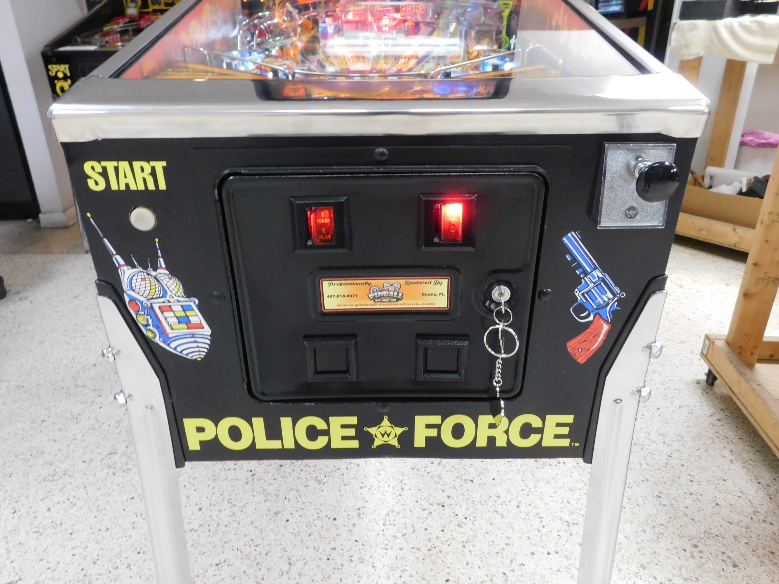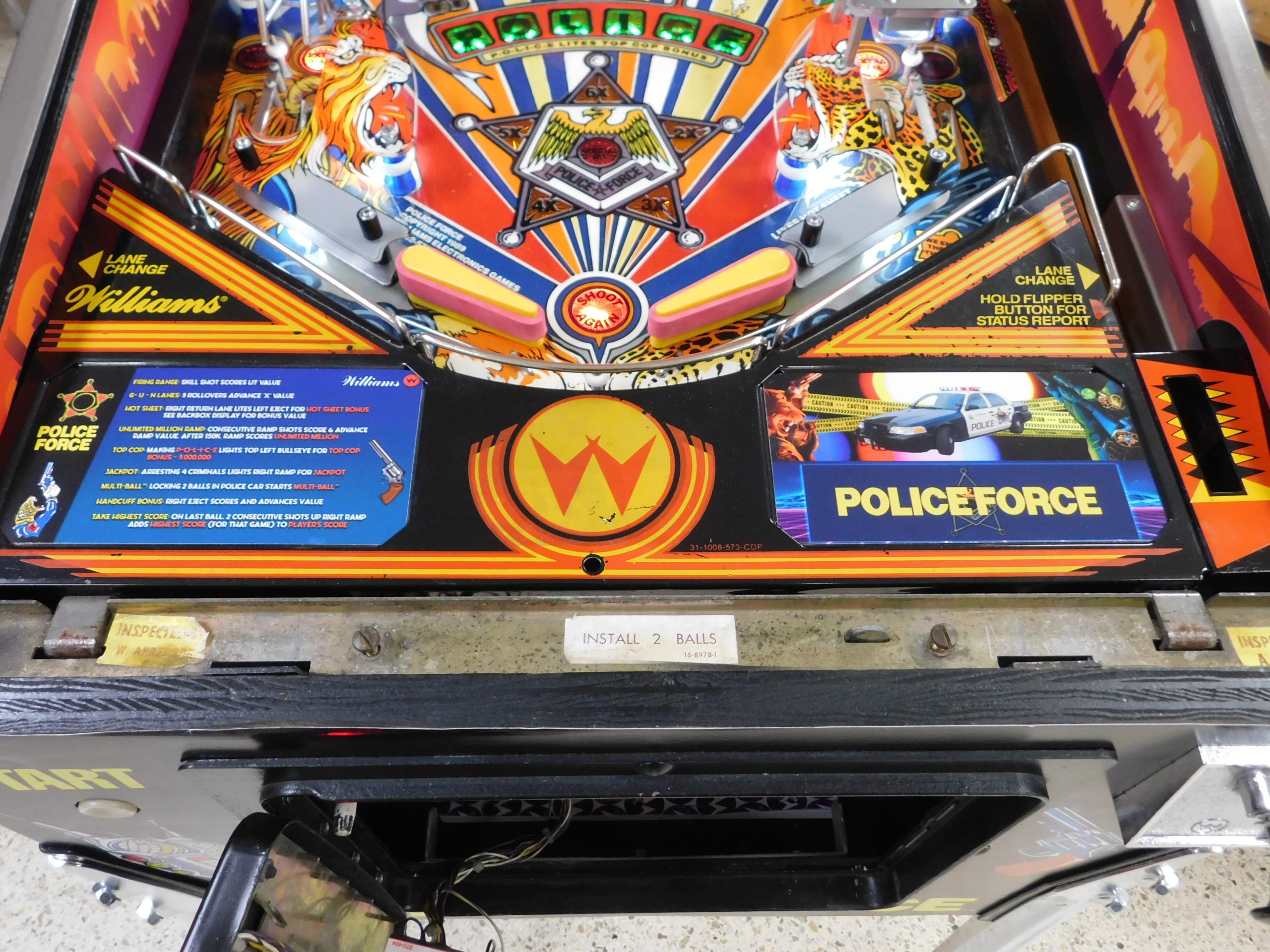 1989 Williams Police Force (#3) (2 ball Multi-ball) (BEAUTIFUL MACHINE) (New cabinet decals, New side art blades, clear-coated playfield, new right side ramp, new translite, new LED Displays) quantity