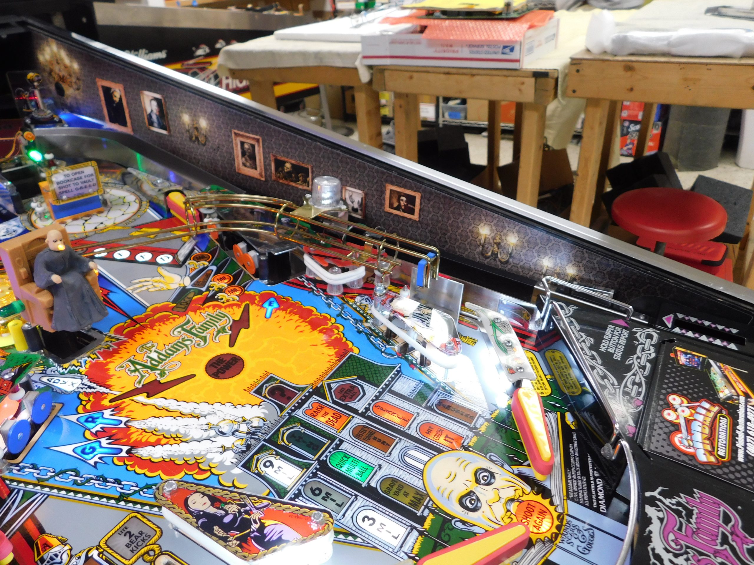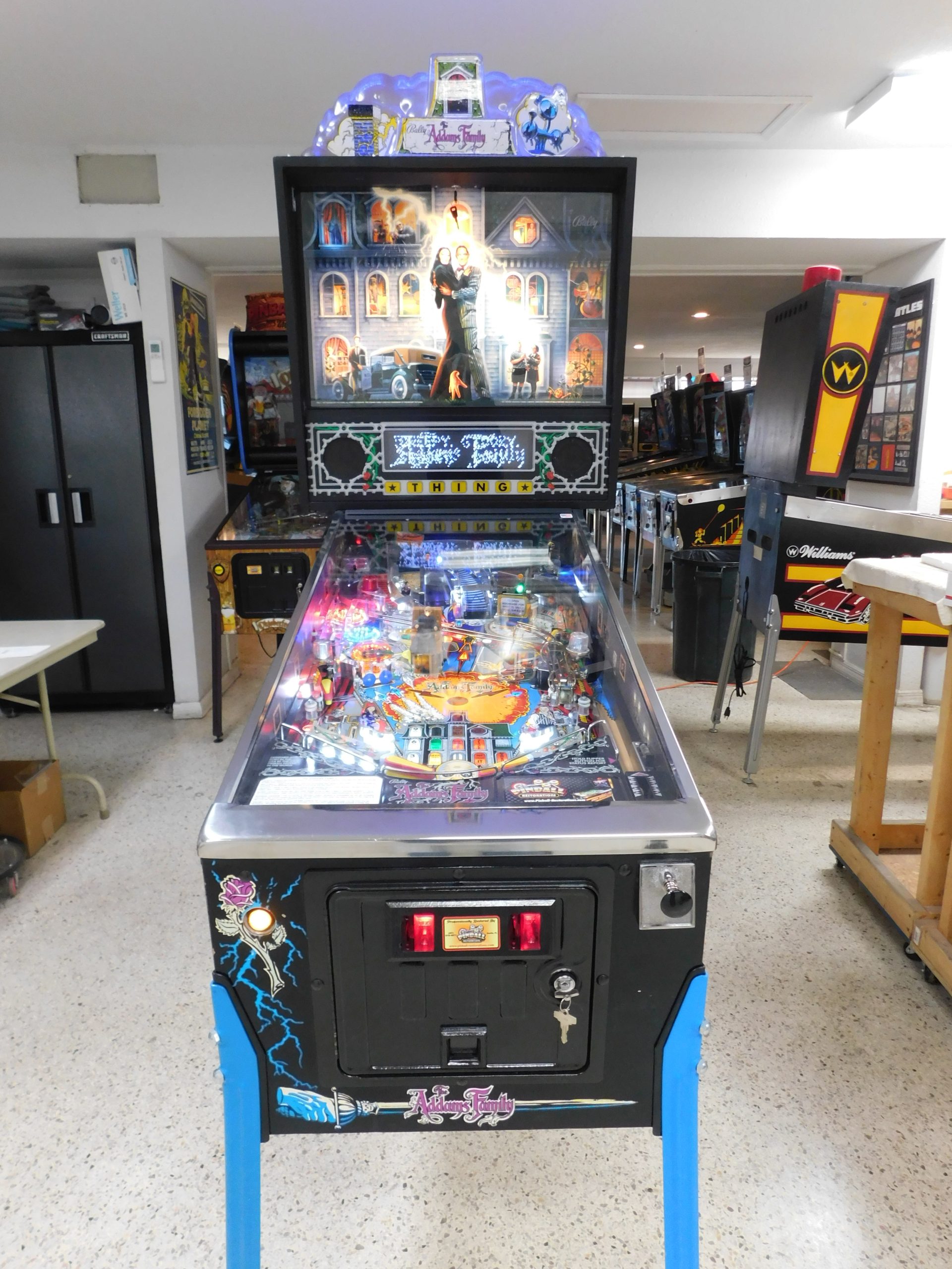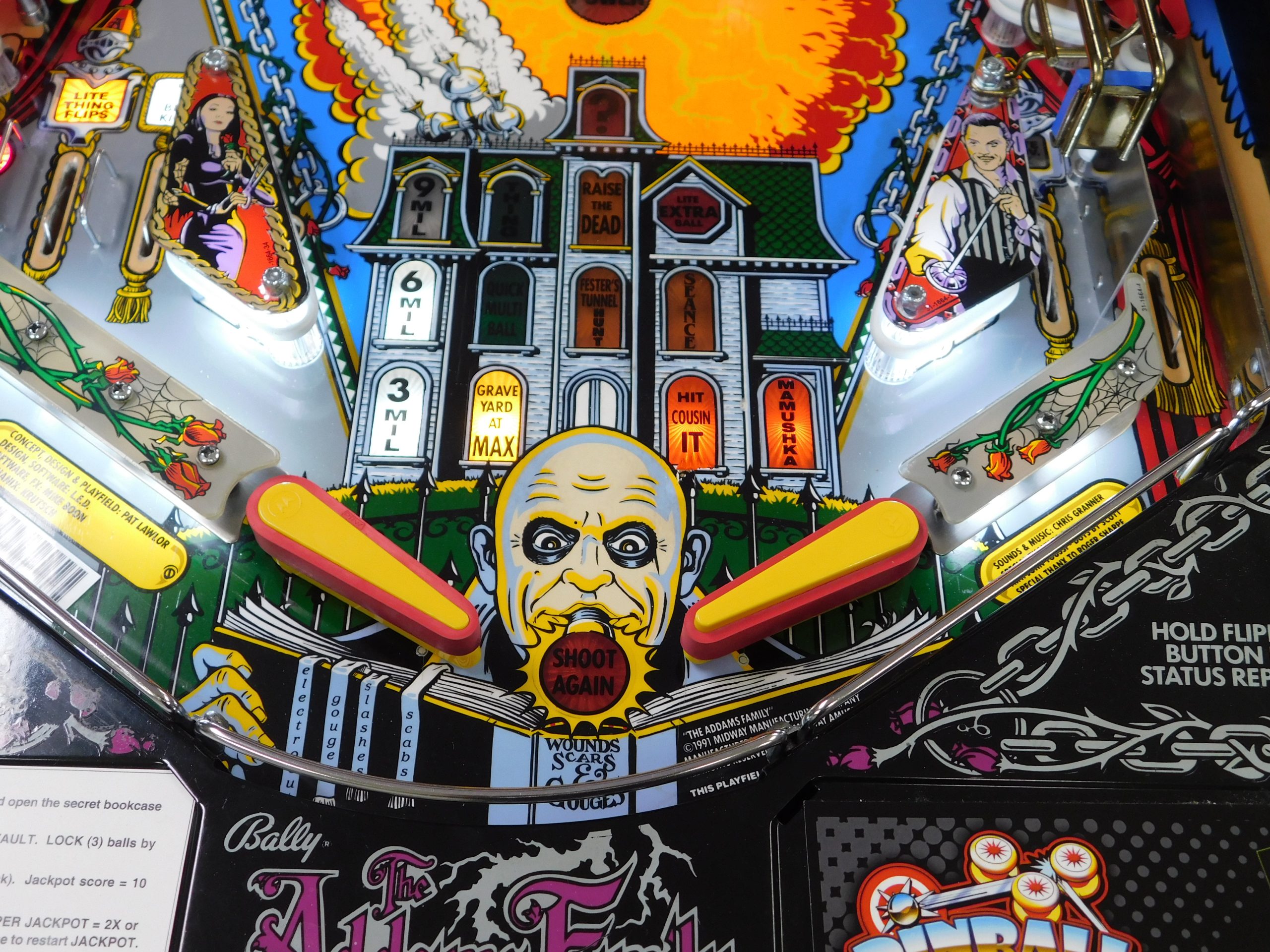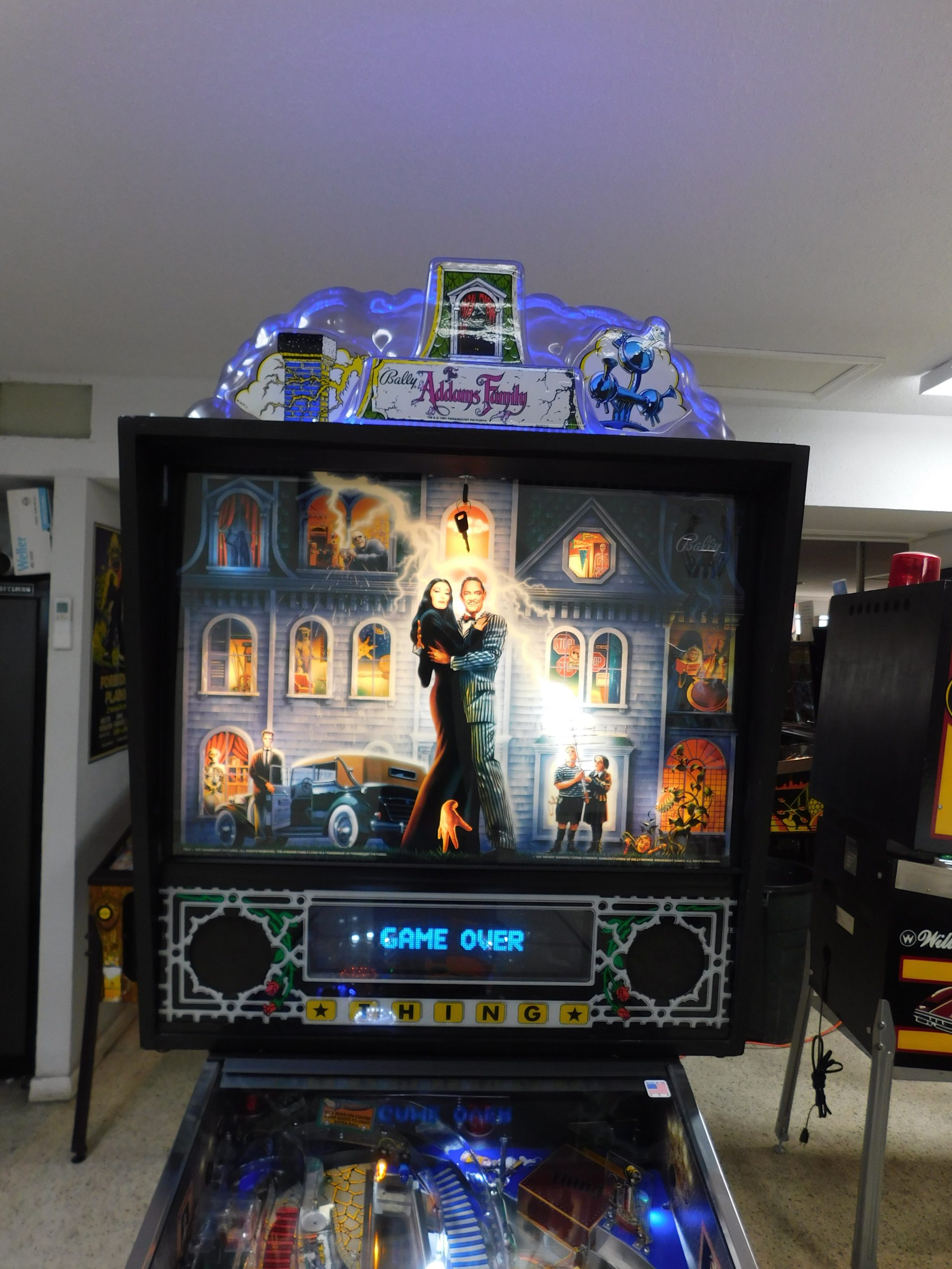 SALE PENDING – 1992 Bally Addams Family (#3) (# ball Multi-ball) (Excellent condition) (New head decals, Thing box decal, Bookcase decal & color DMD)