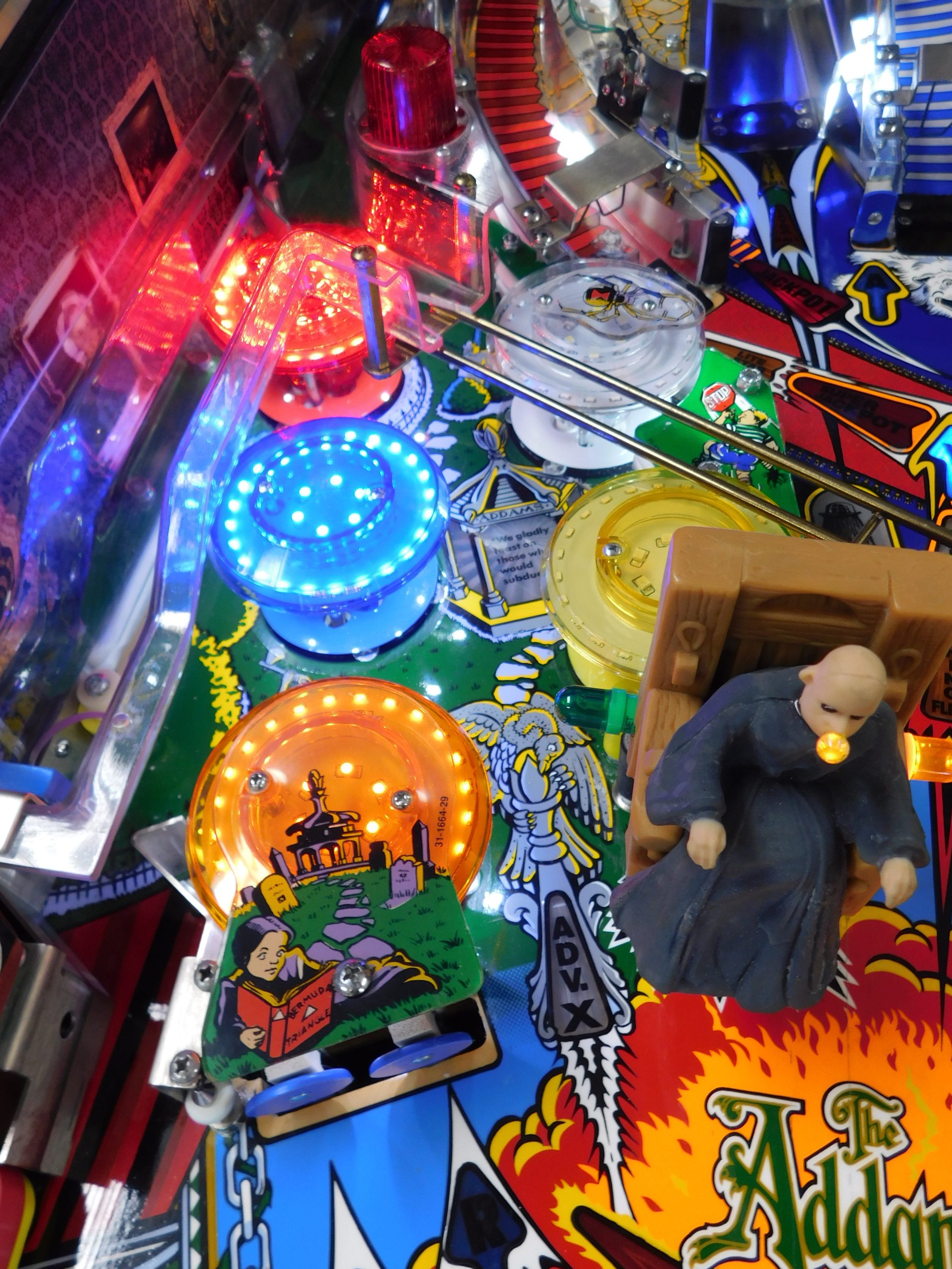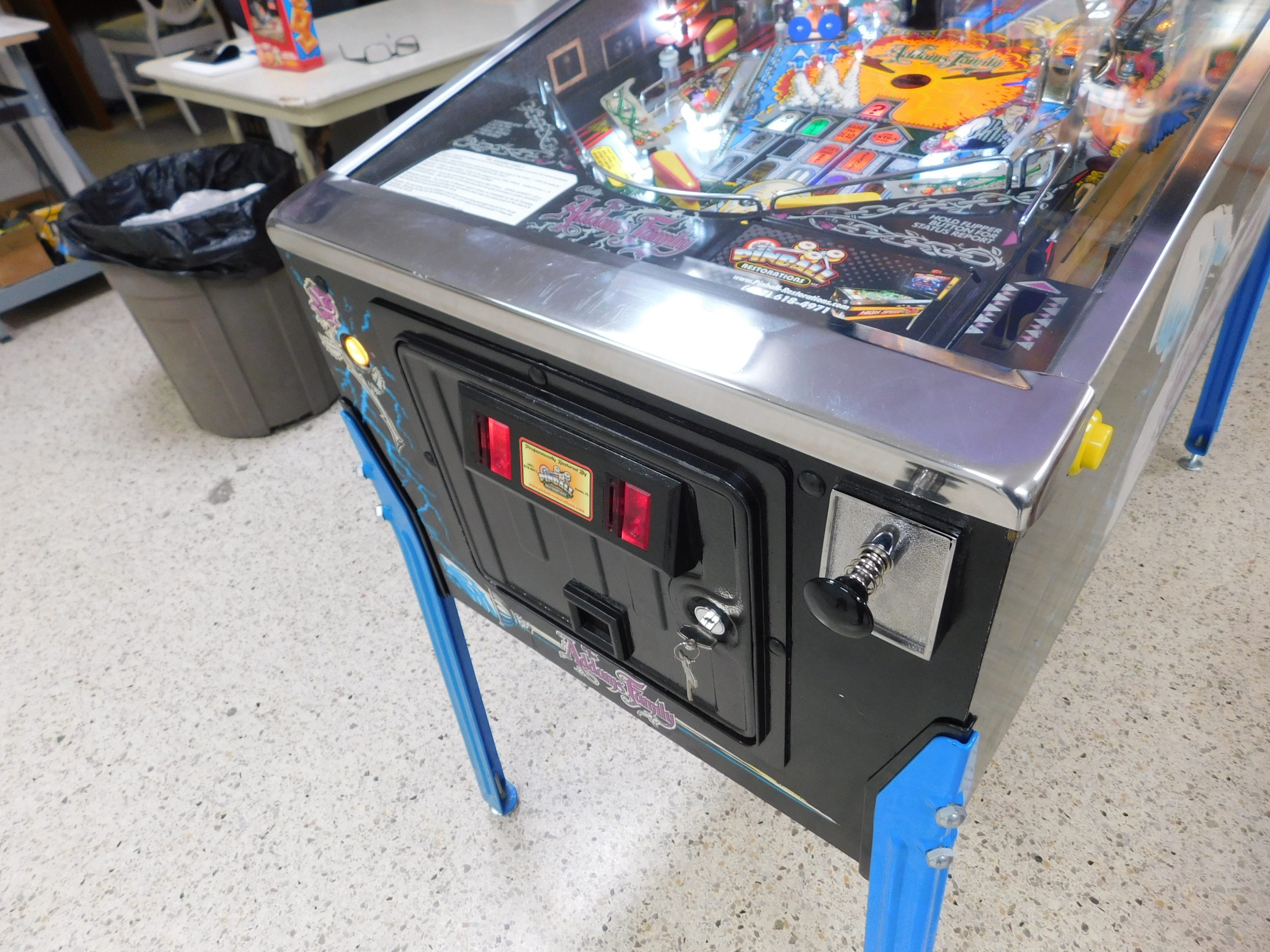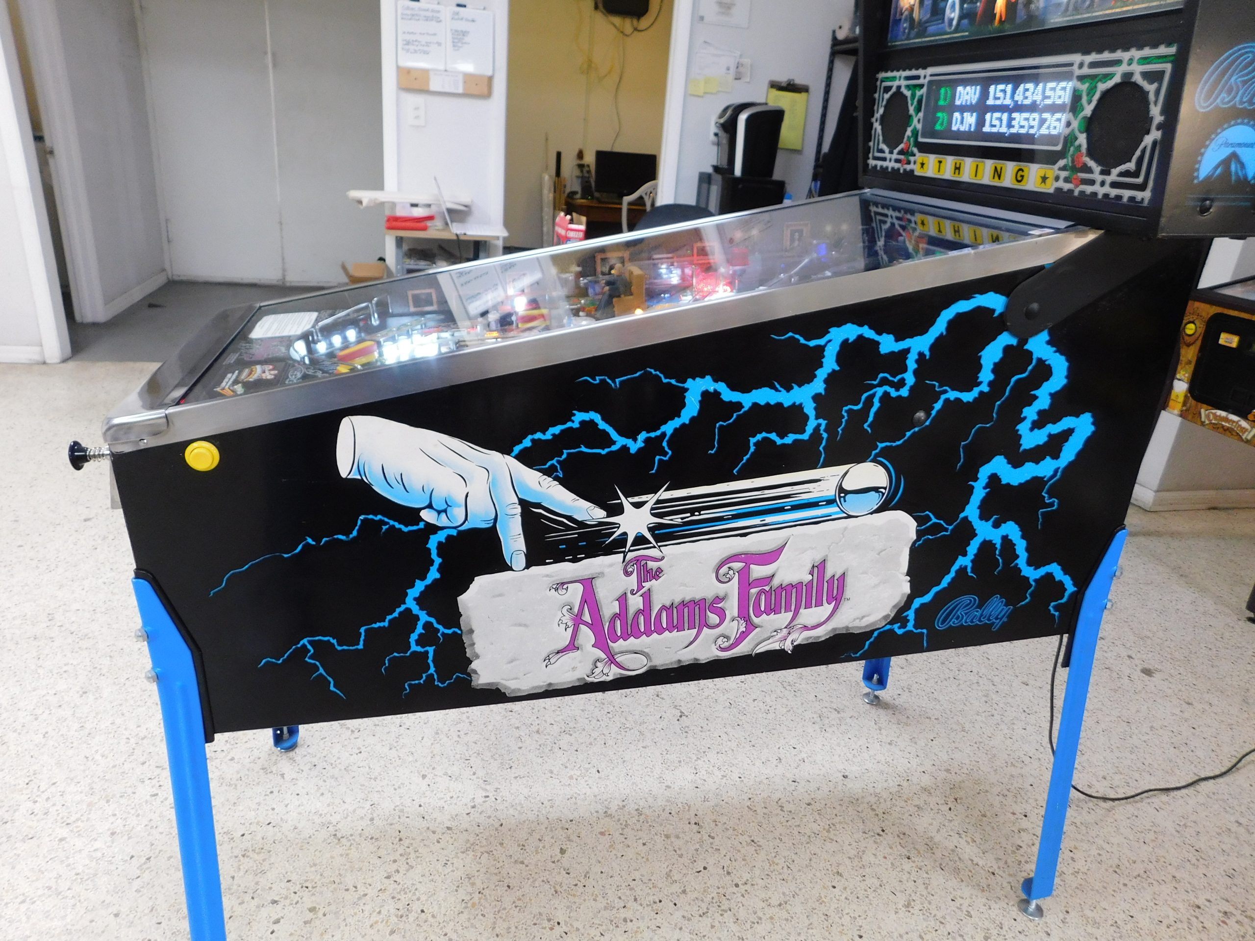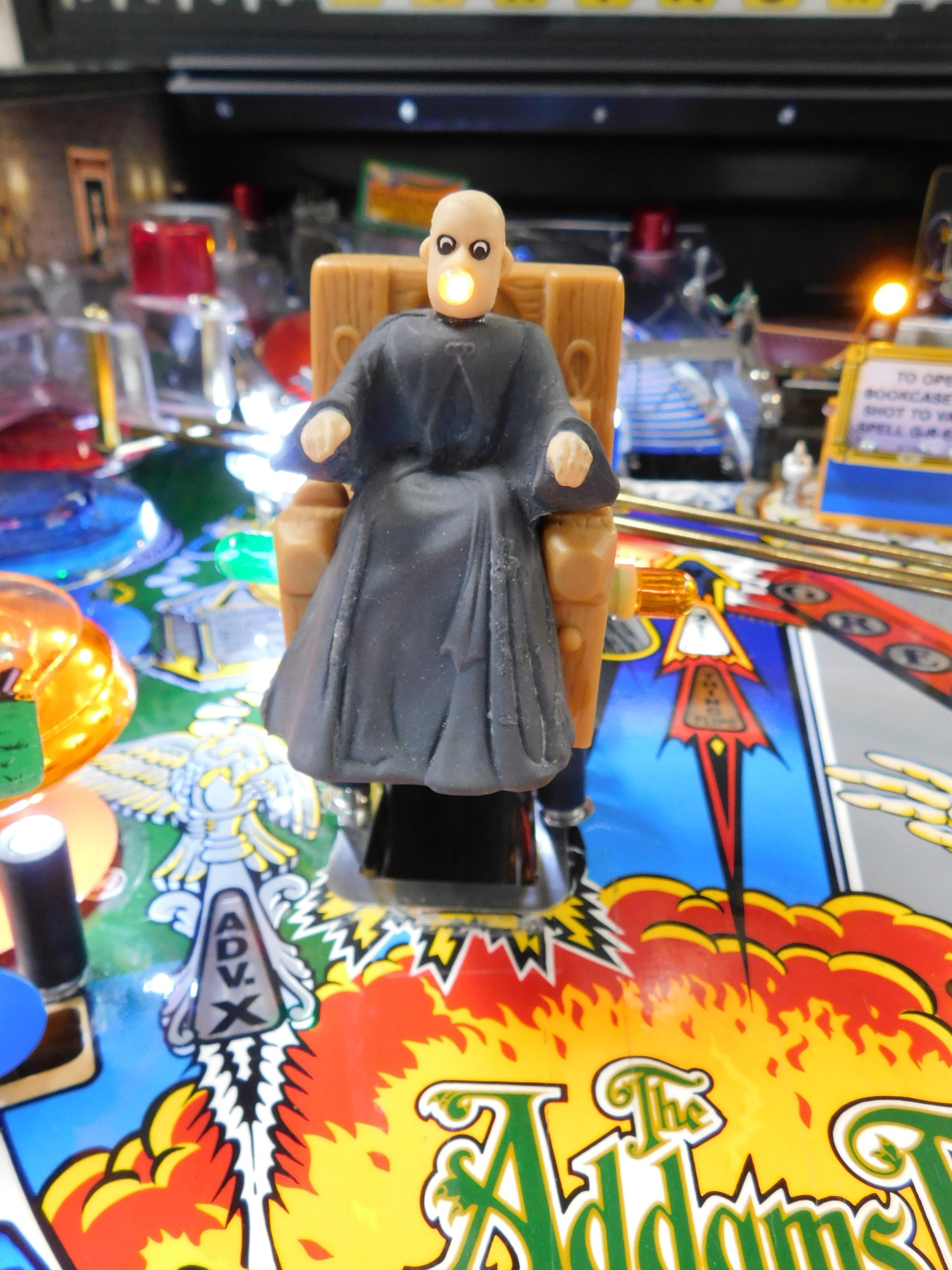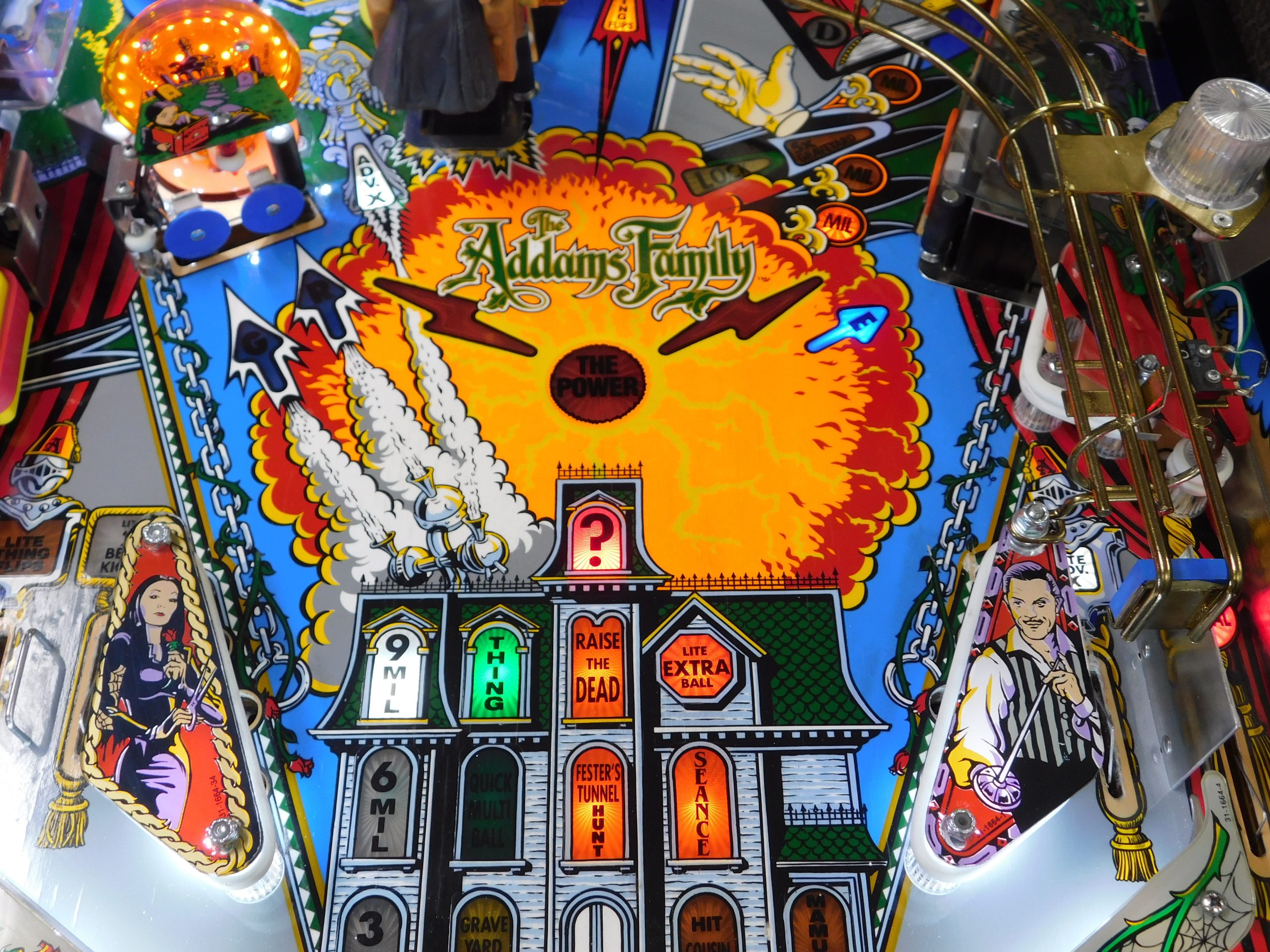 SALE PENDING – 1992 Bally Addams Family (#3) (# ball Multi-ball) (Excellent condition) (New head decals, Thing box decal, Bookcase decal & color DMD)