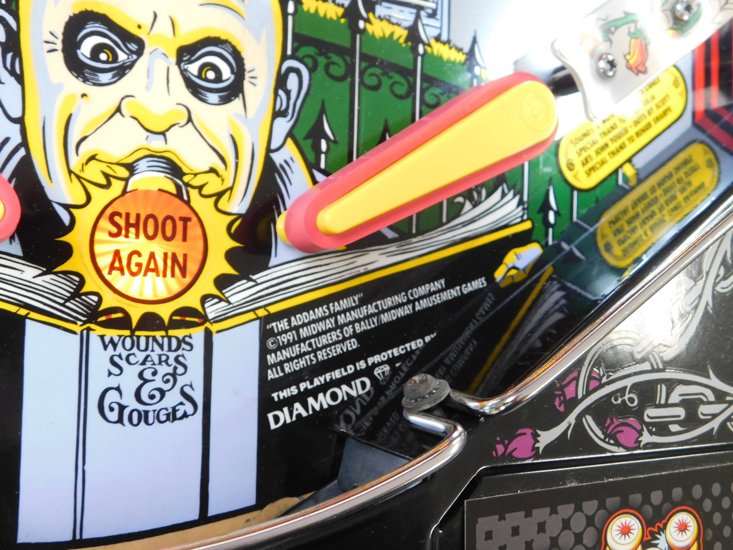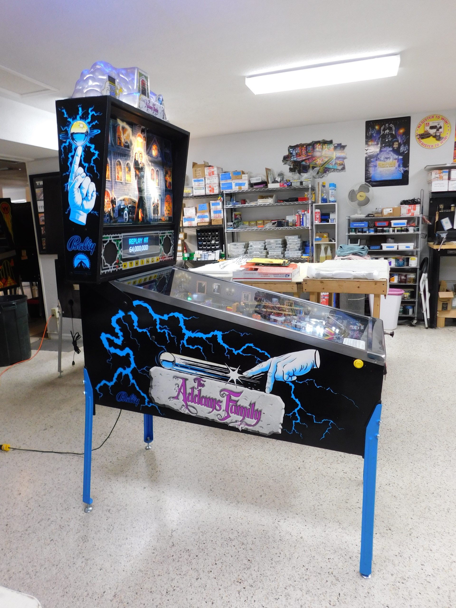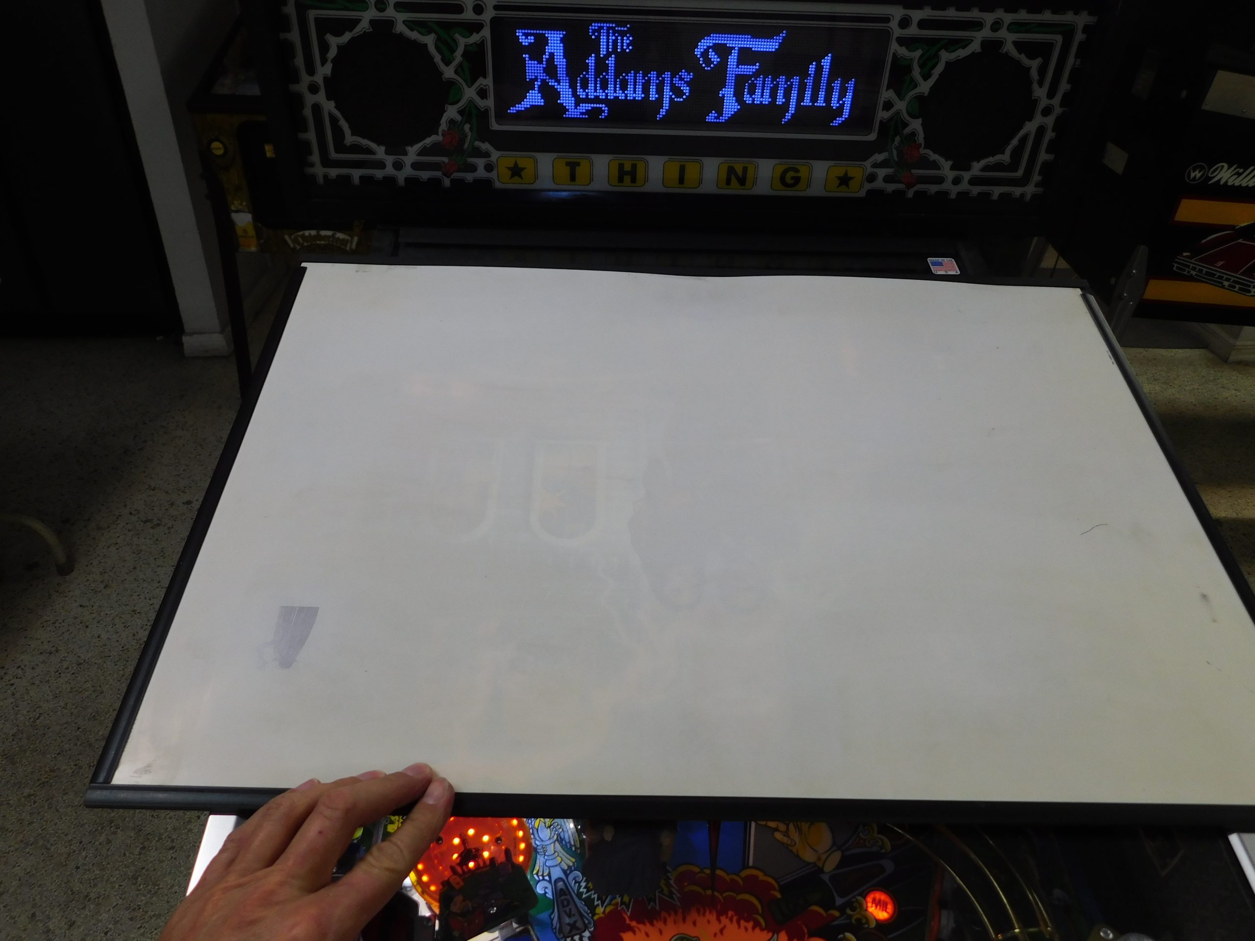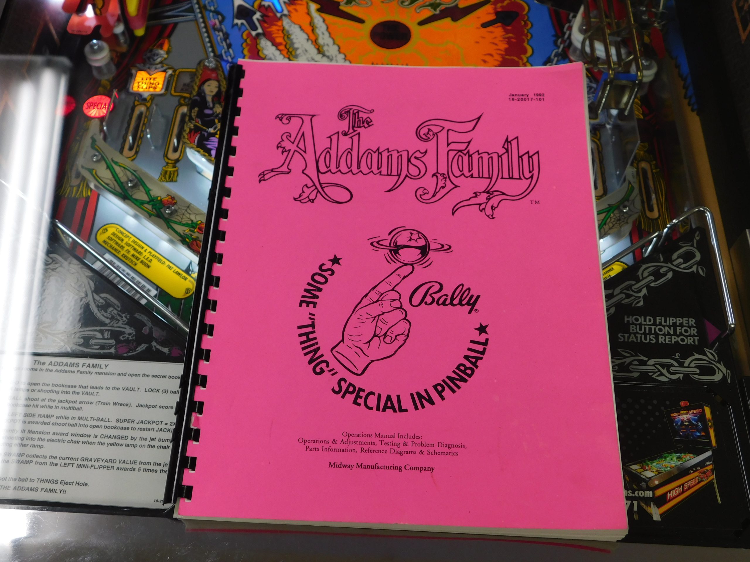 SALE PENDING – 1992 Bally Addams Family (#3) (# ball Multi-ball) (Excellent condition) (New head decals, Thing box decal, Bookcase decal & color DMD)