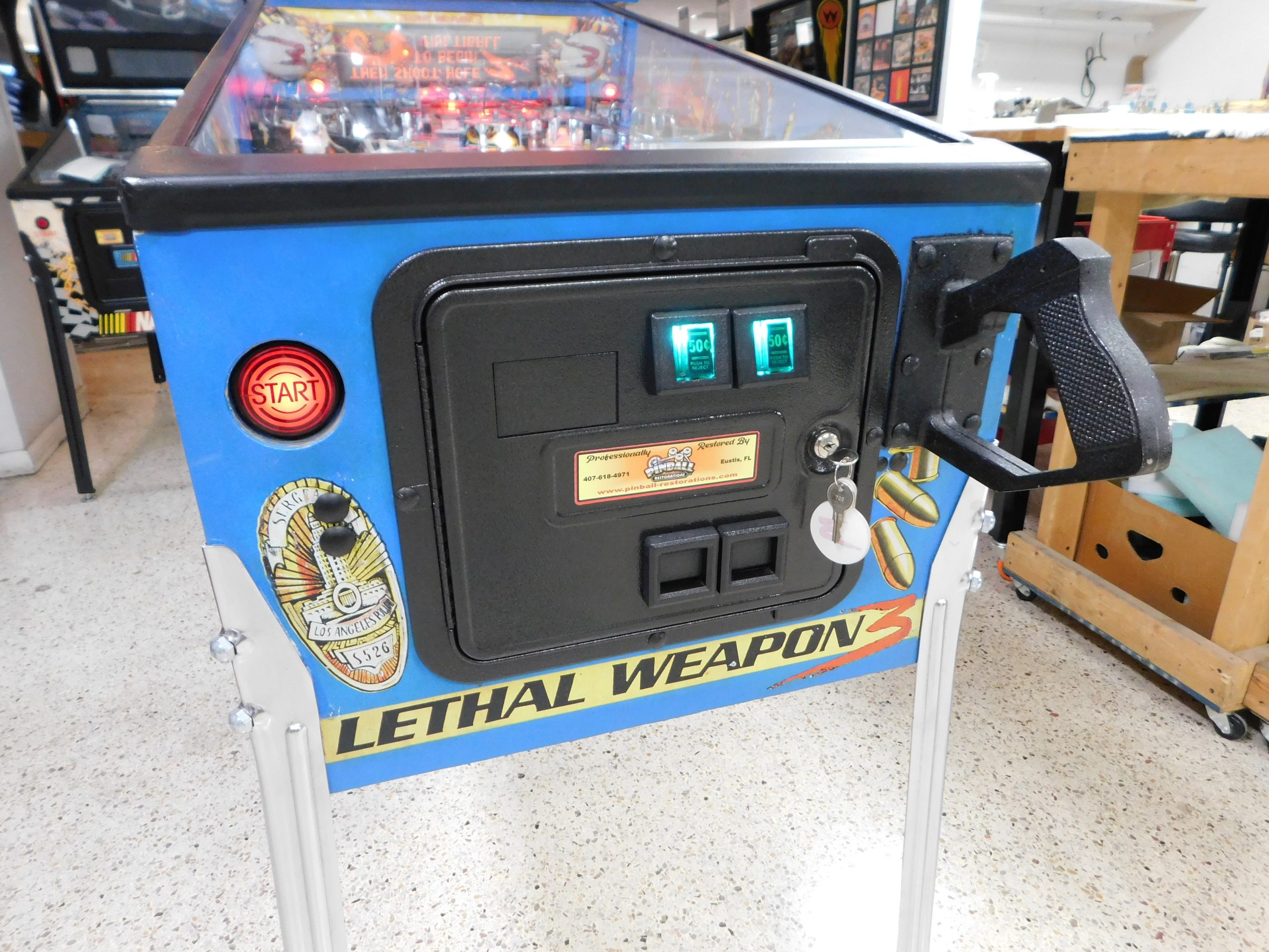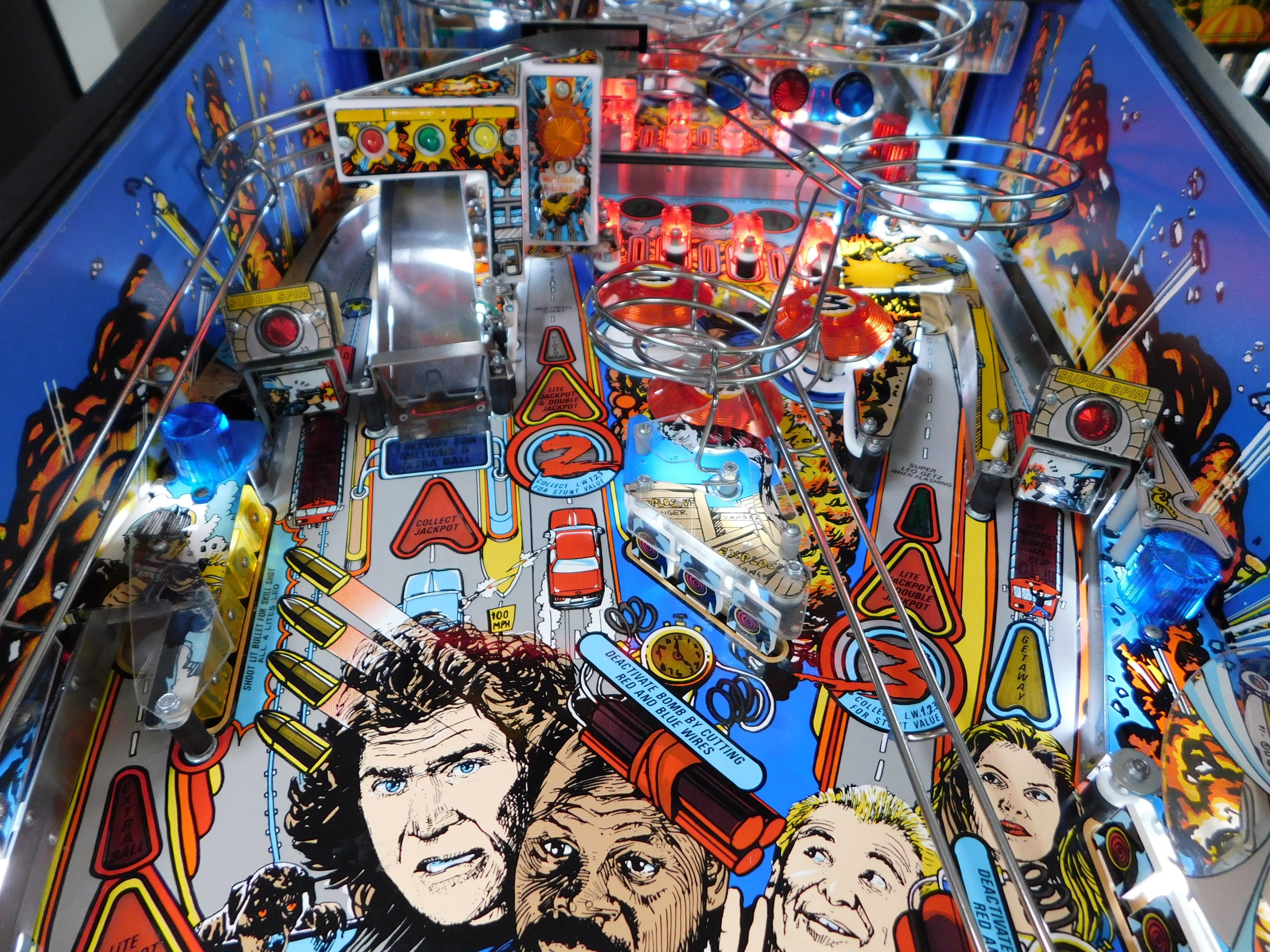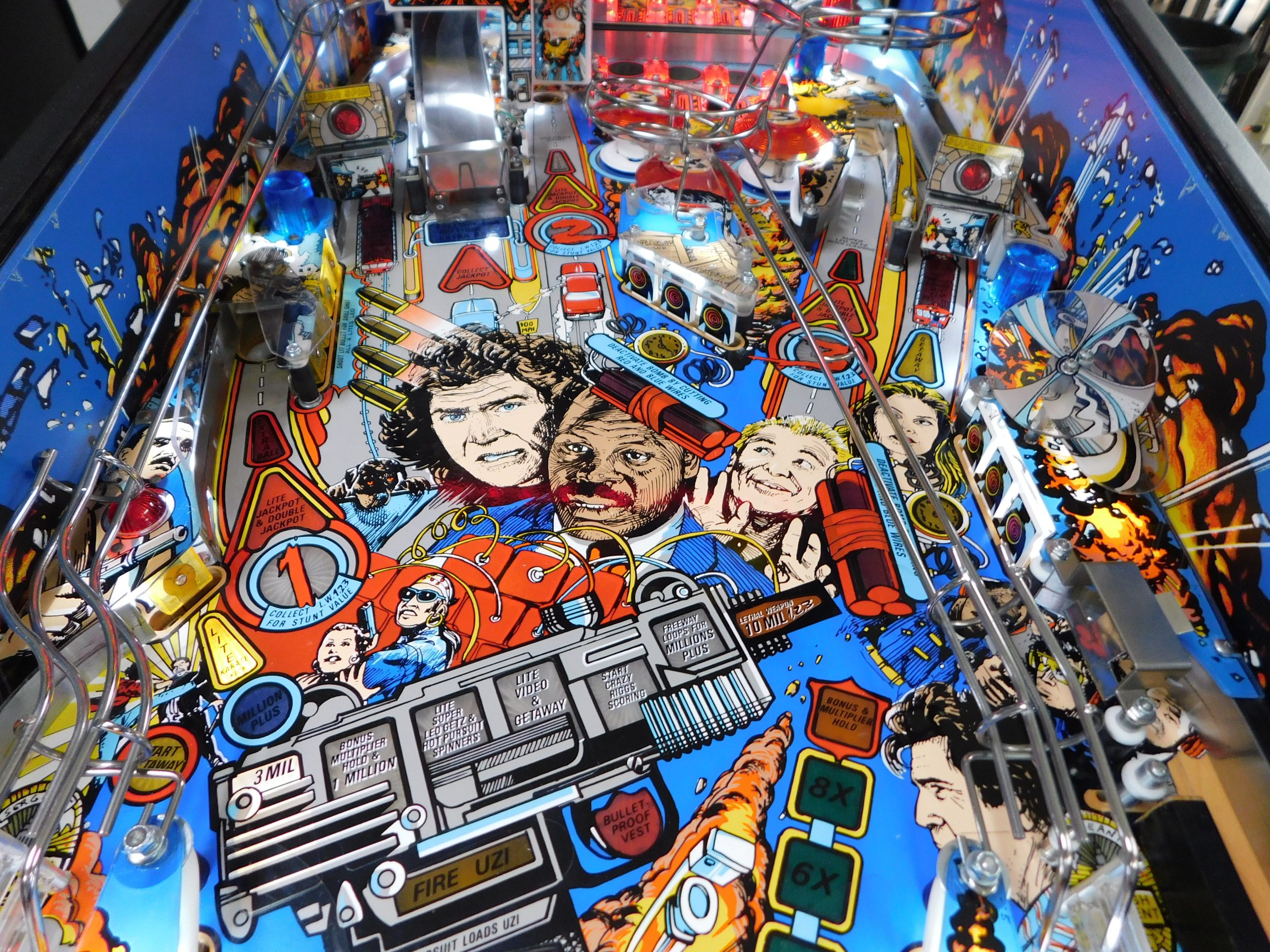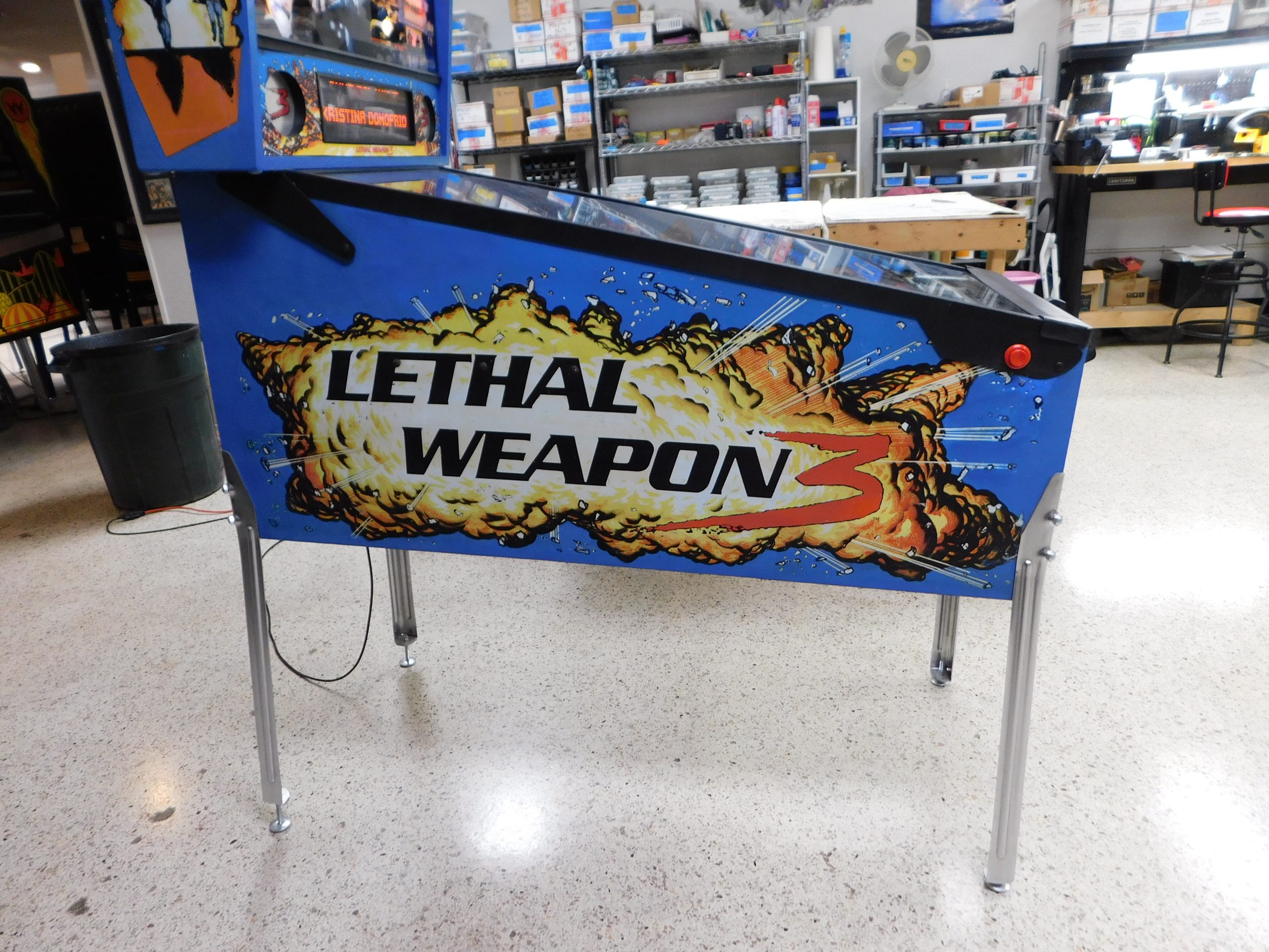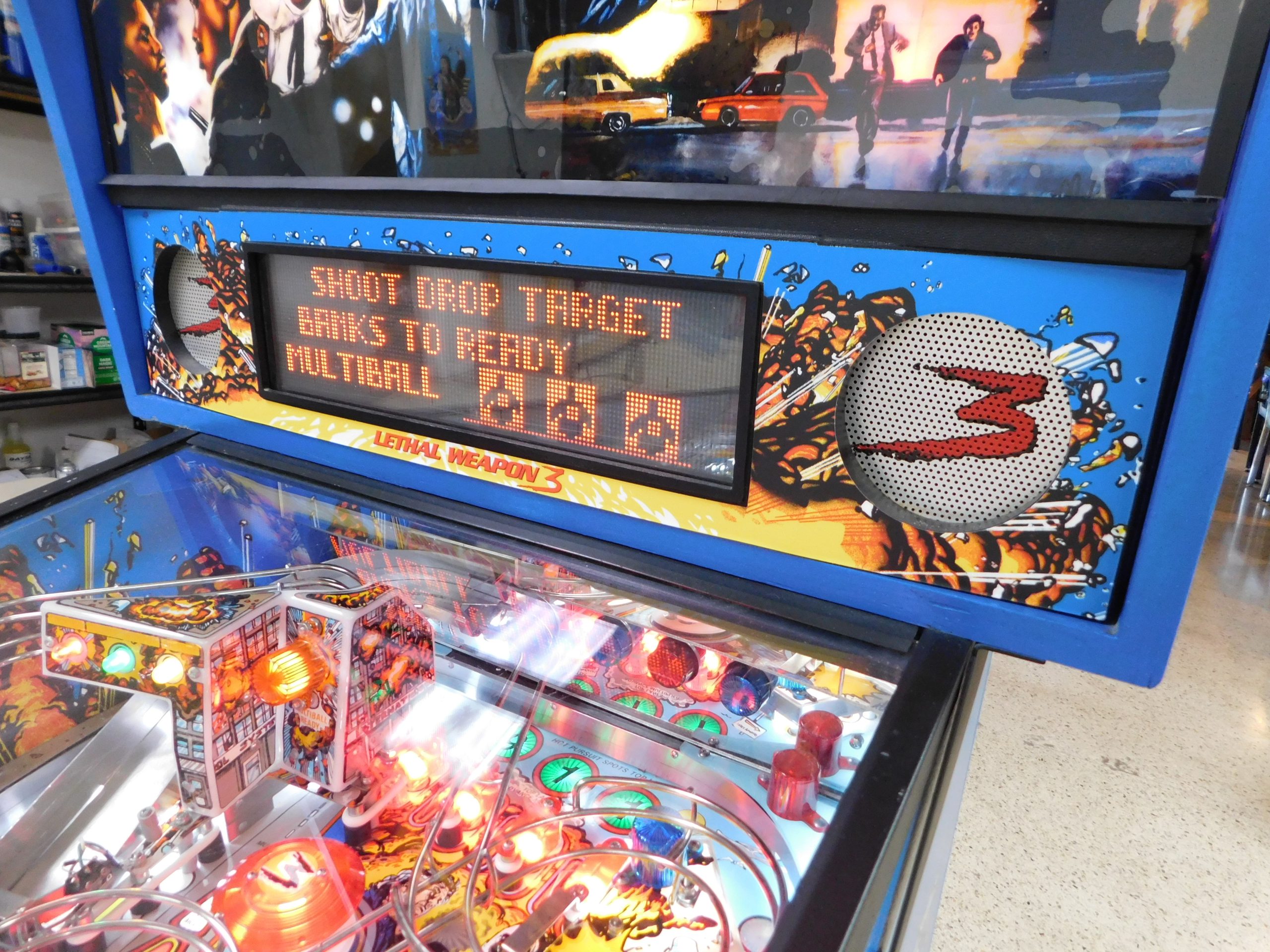 Gorgeous restored Data East Lethal Weapon 3 pinball. Fun movie theme call-outs. Three ball Multi-ball game play.