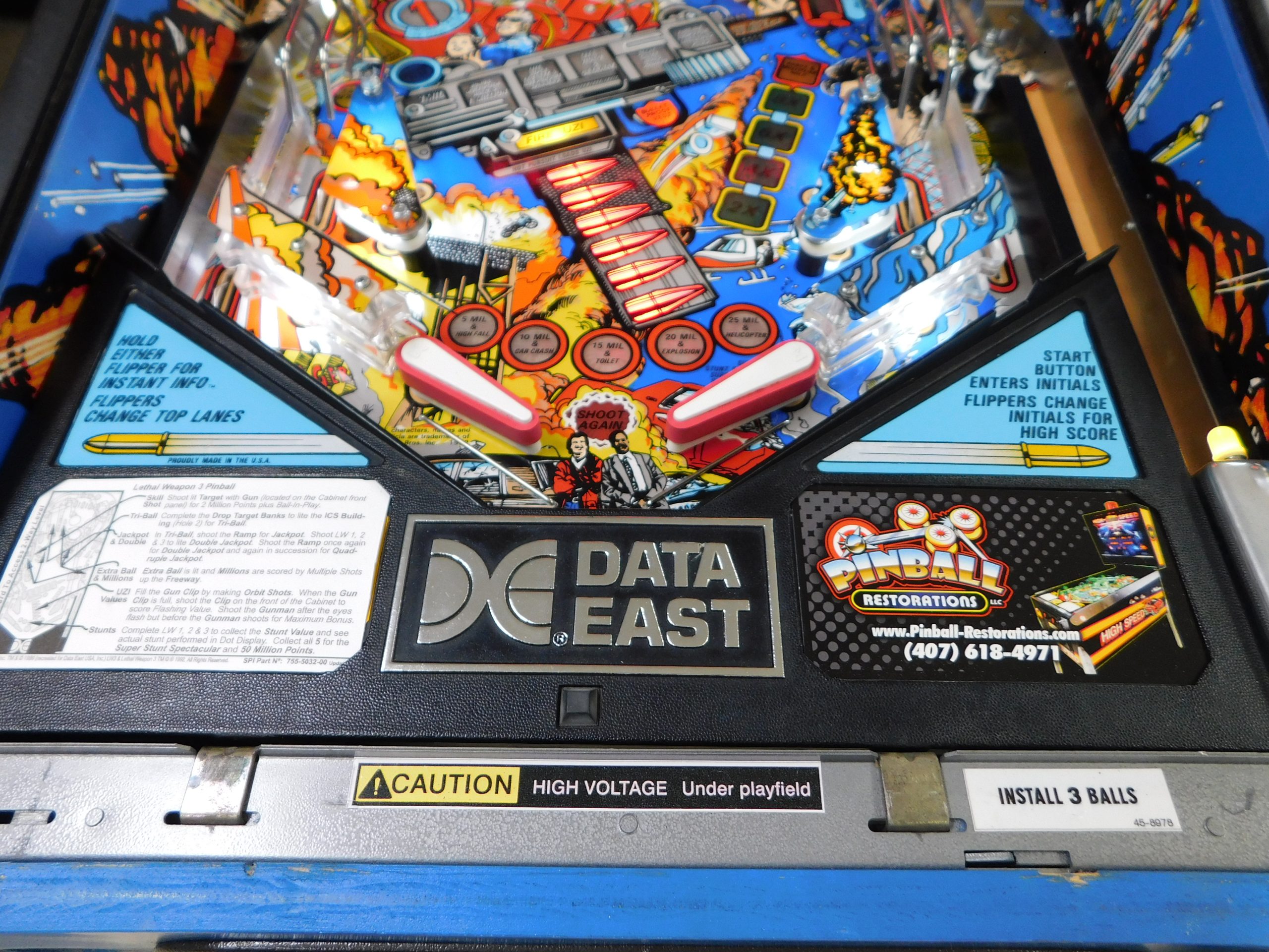 1992 Data East Lethal Weapon 3 (#2) (3 ball Multi-ball) (Brand new translite, side art blades and speaker panel decal added)