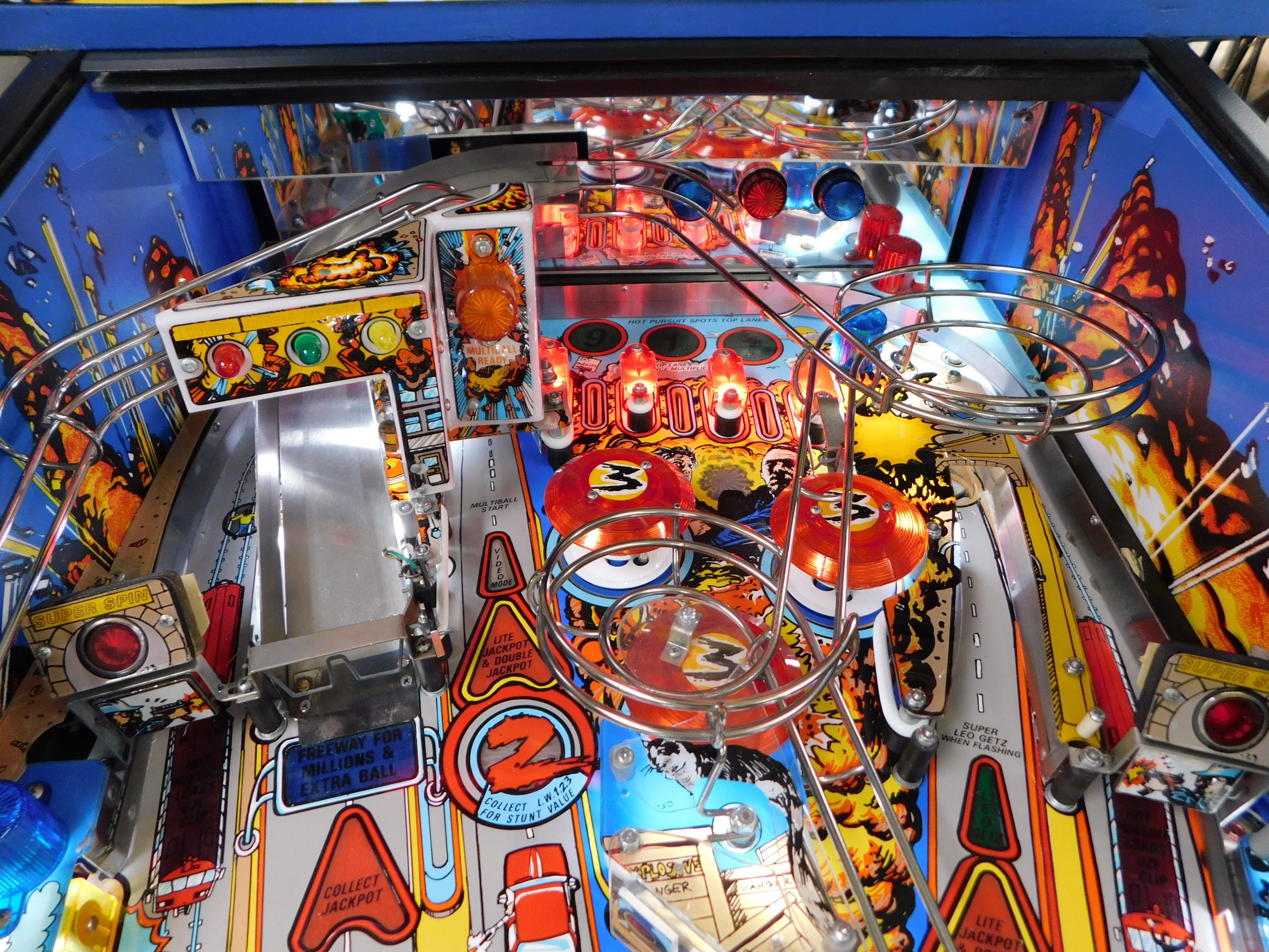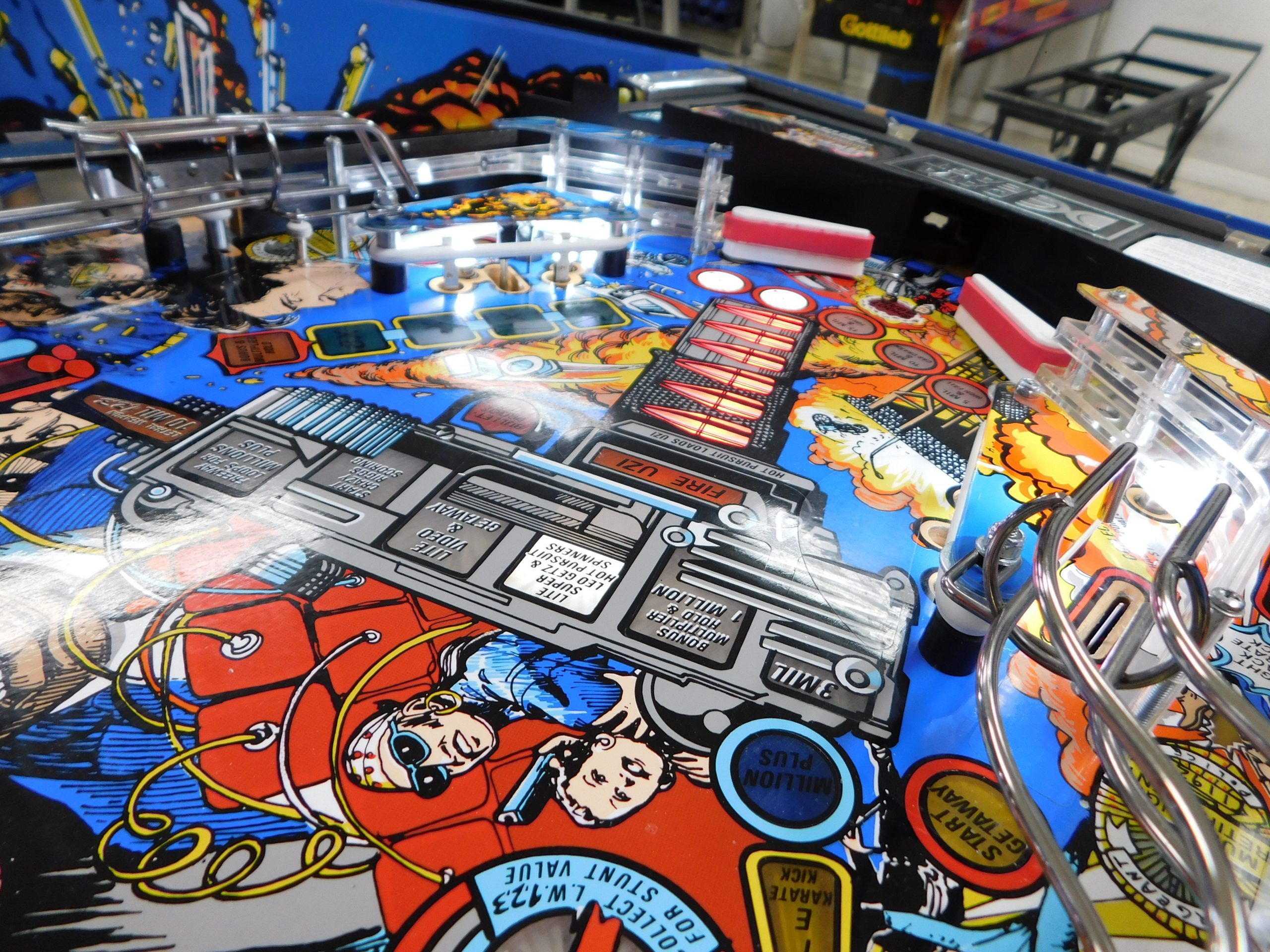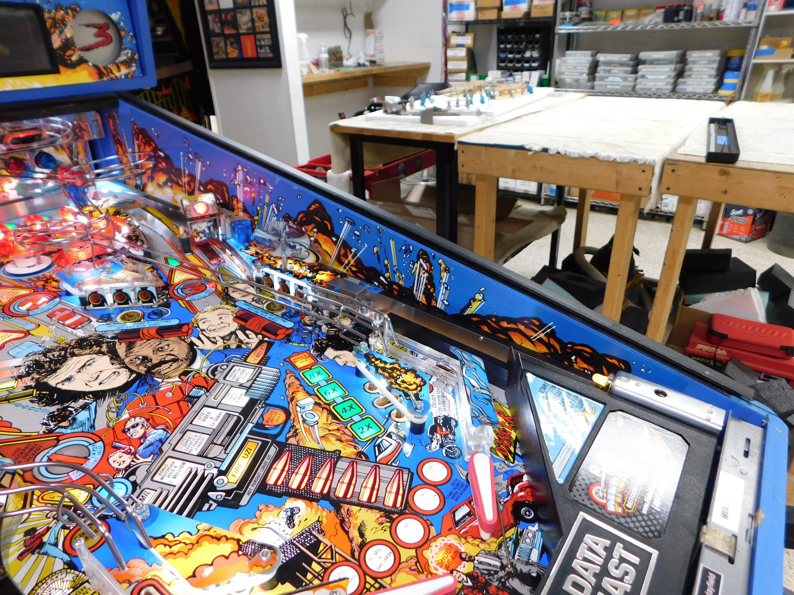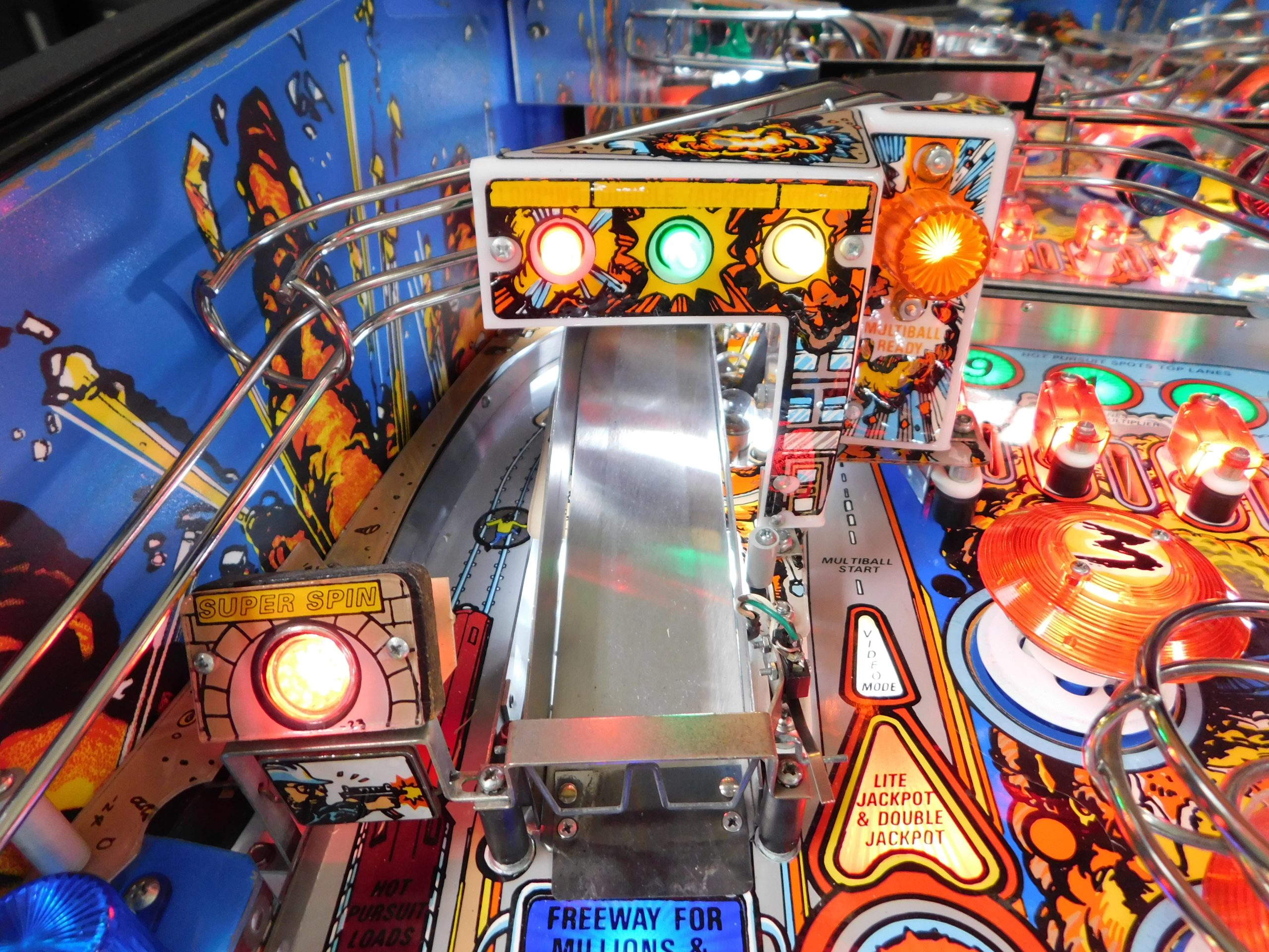 Playfield was disassembled, cleaned, polished and waxed. All playfield plastics and metal were washed and polished. Broken playfield plastics were replaced. Game was converted to LED bulbs. Playfield inserts were cleaned underneath to remove EMF dust. All flippers and bumpers were fully rebuilt with new parts above and below the playfield. New rubber bands were installed.