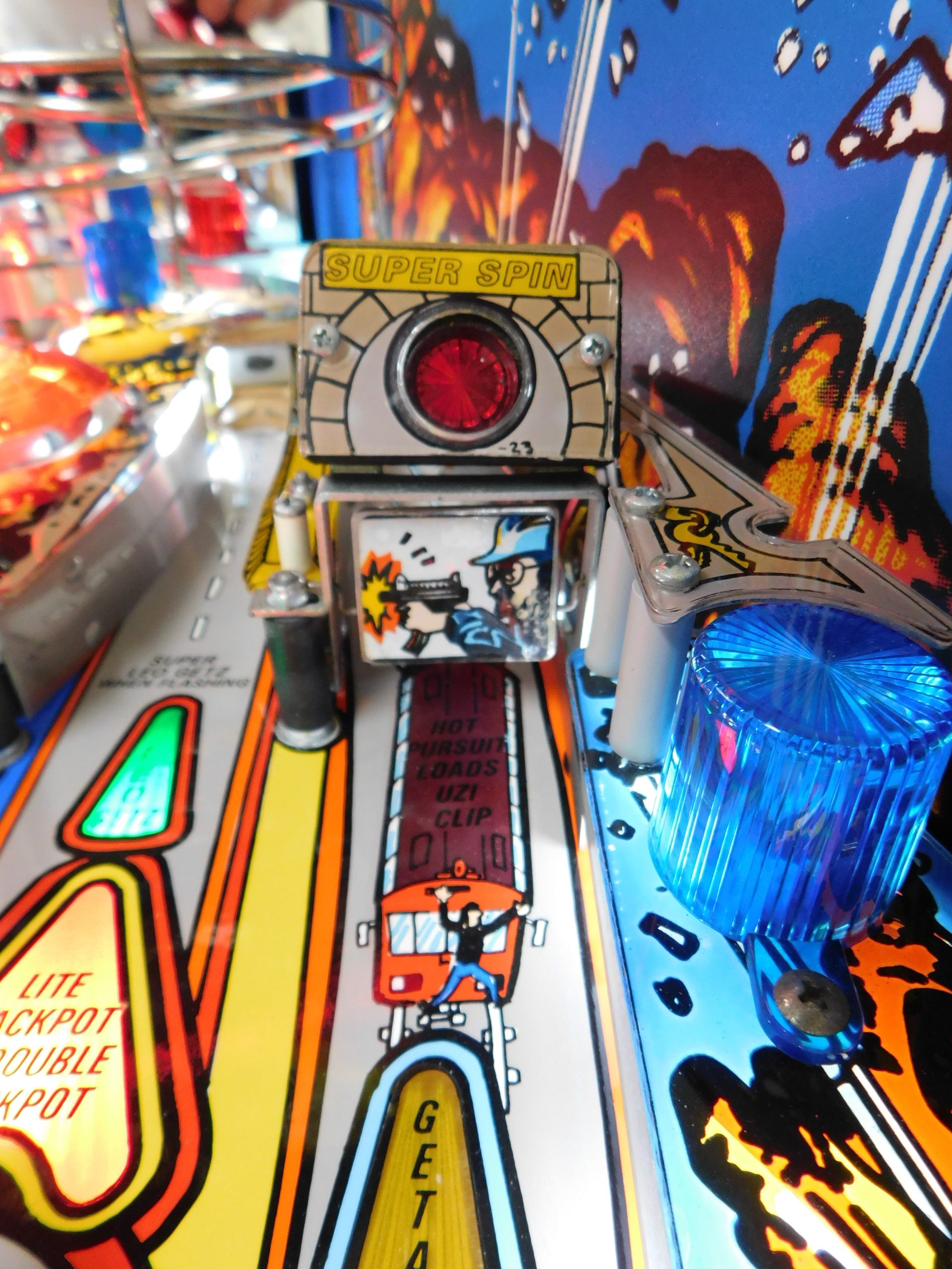 Coin door was removed and painted. Lock down receiver was removed, cleaned then painted. Lock down bar and siderails were removed, cleaned and painted black. All games come with manual, wiring schematics and copy of the original sales flyer.