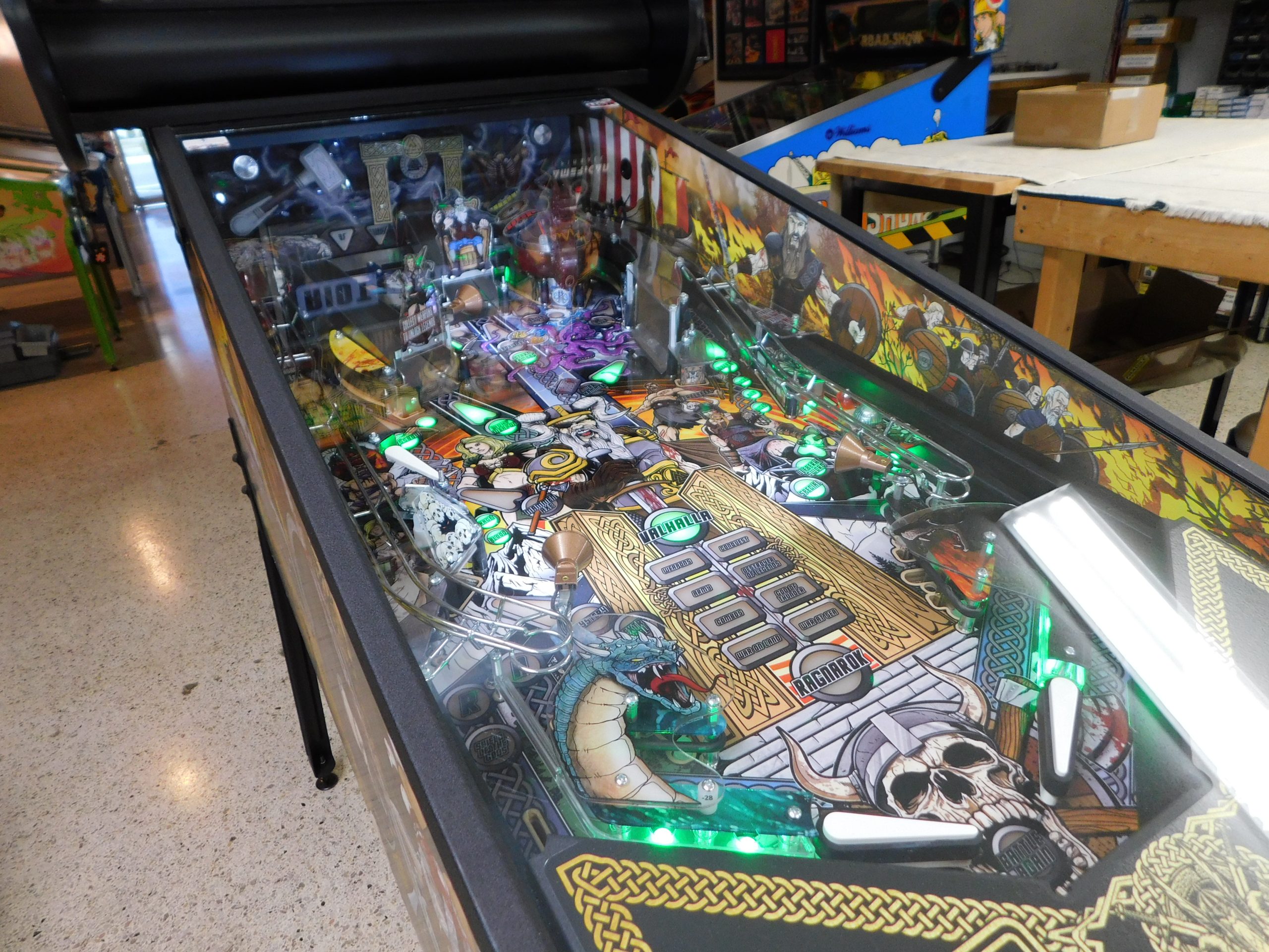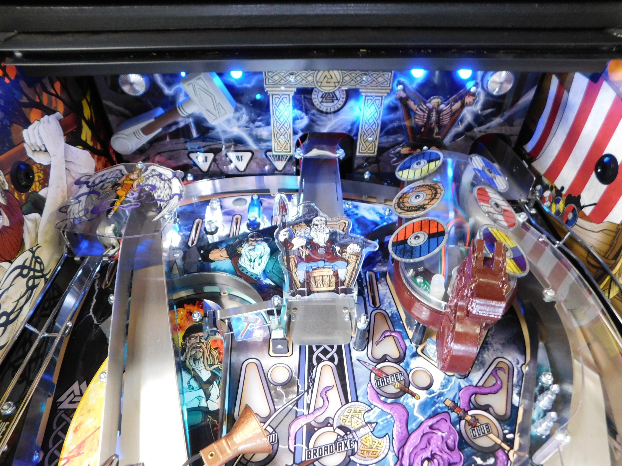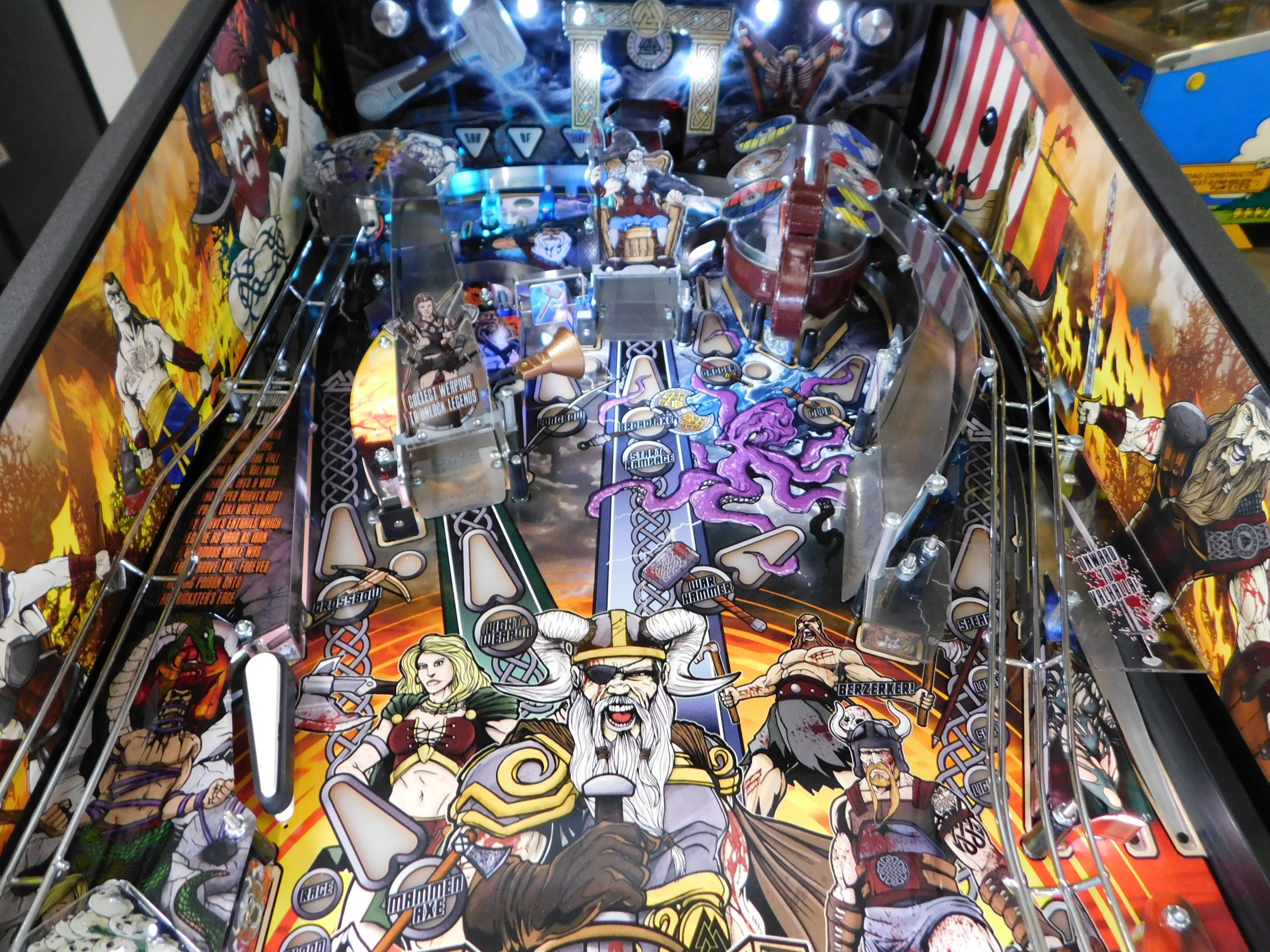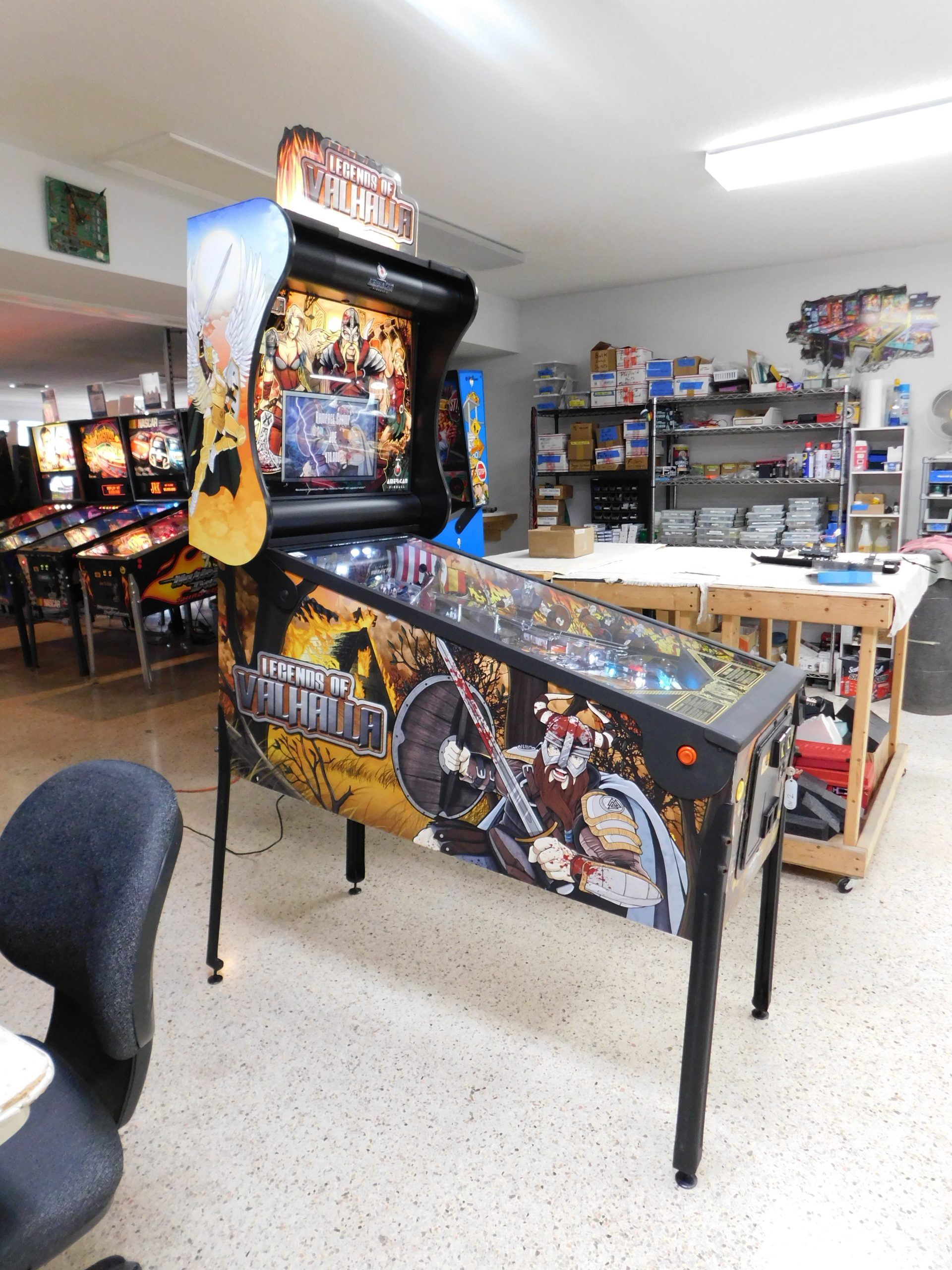 2022 American Pinball Legends of Valhalla (#1) (Classic Edition) (6 ball Multi-ball) (Shaker motor installed, Side art blade decals added, illuminated topper, 4 stereo speakers plus 8” cabinet subwoofer, Interactive Thor’s Hammer, Two under playfield magnets, New side head decals (outside), Upgraded to the latest game code)