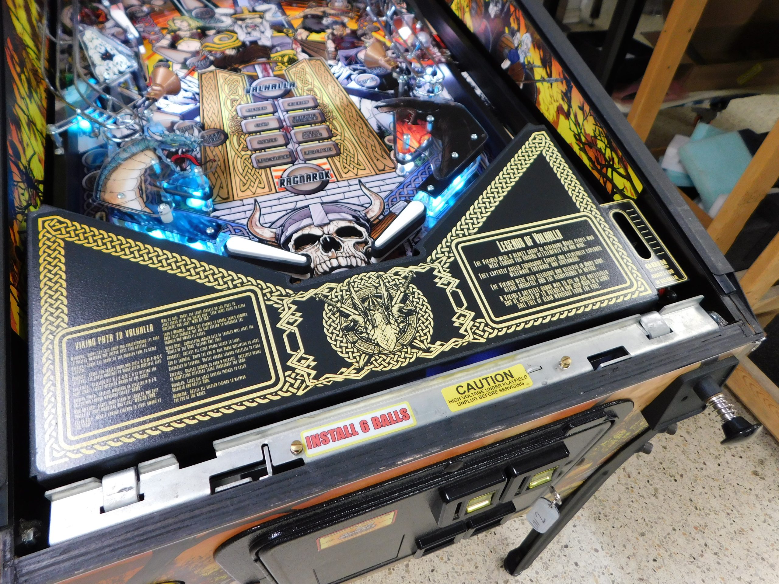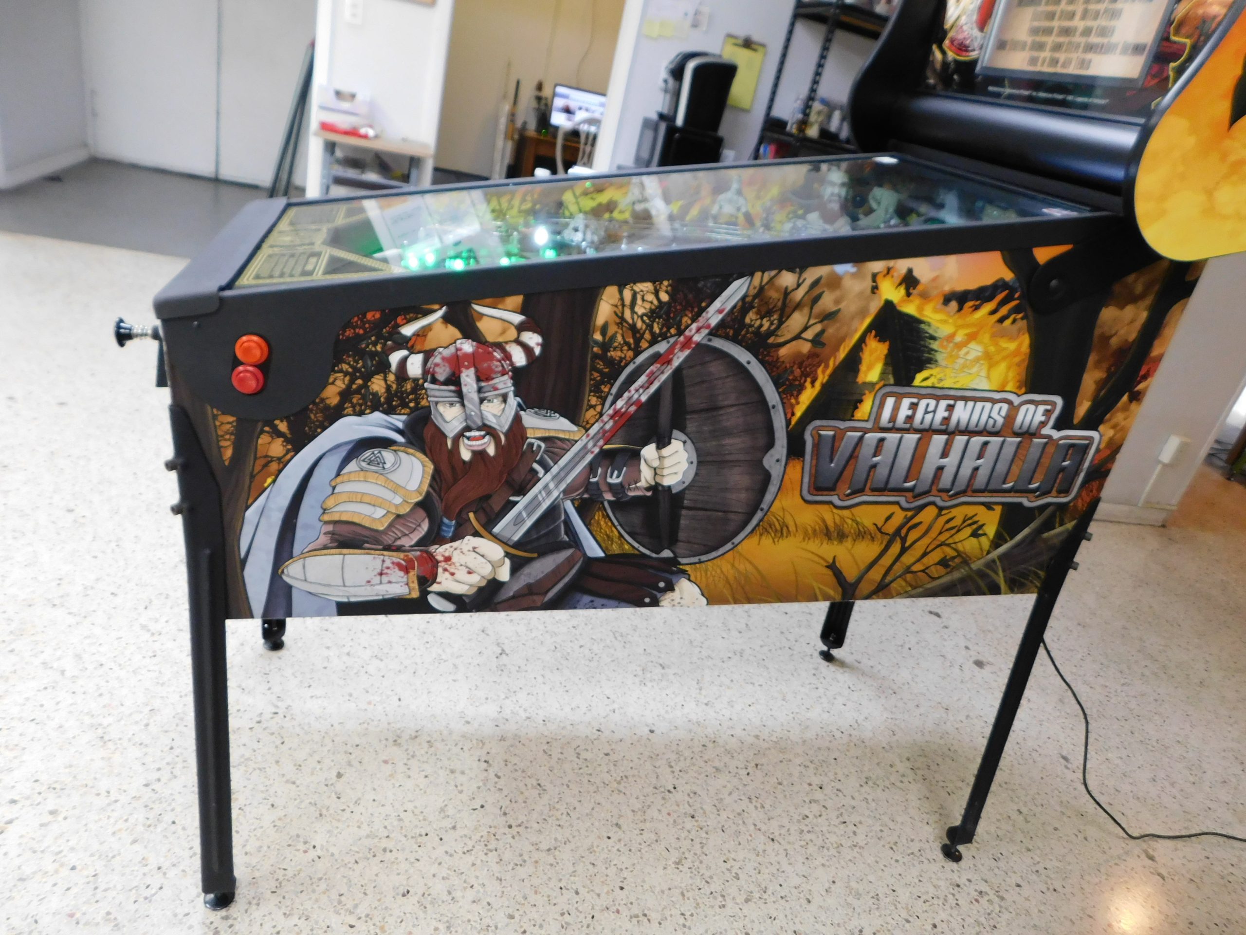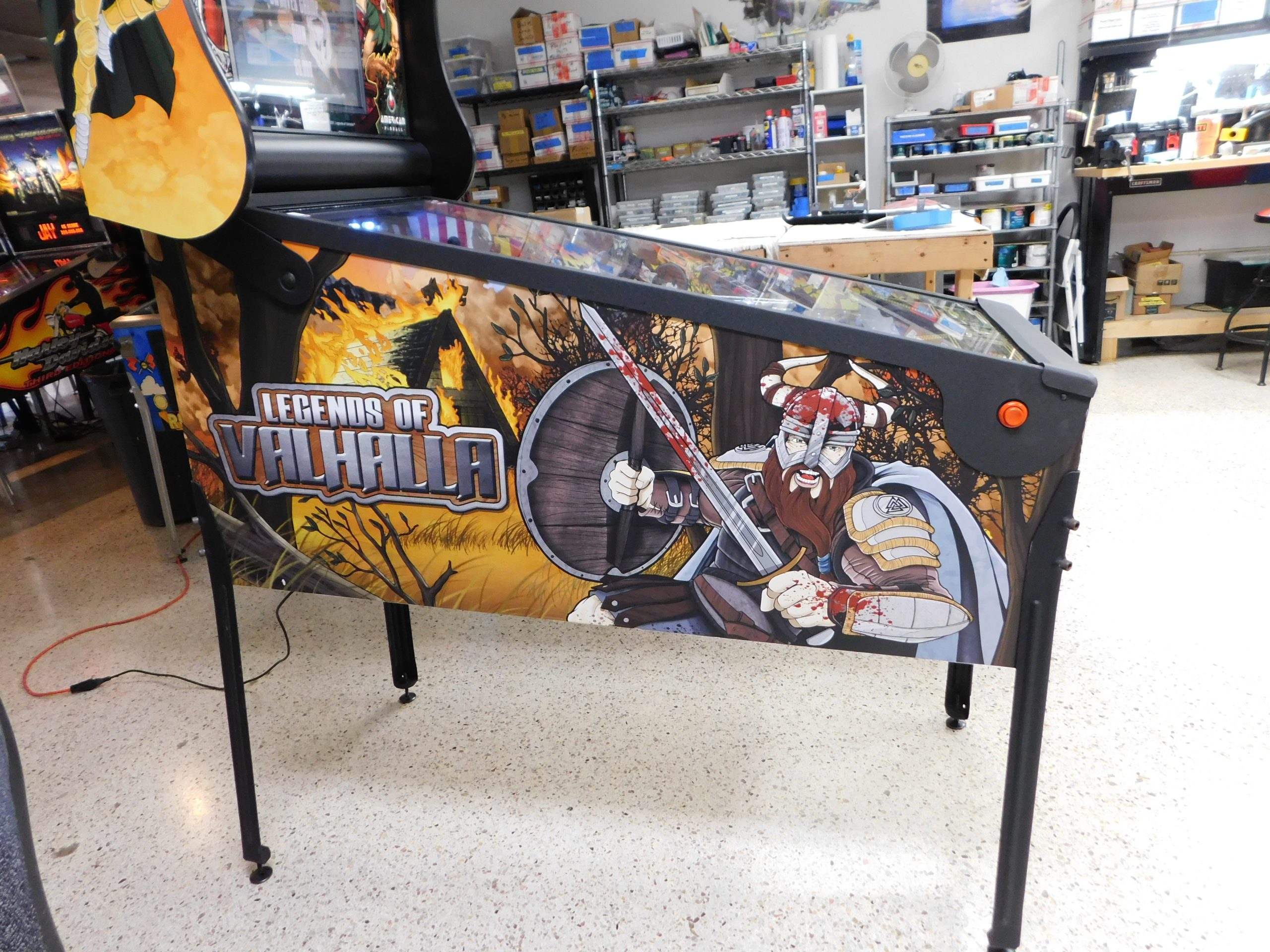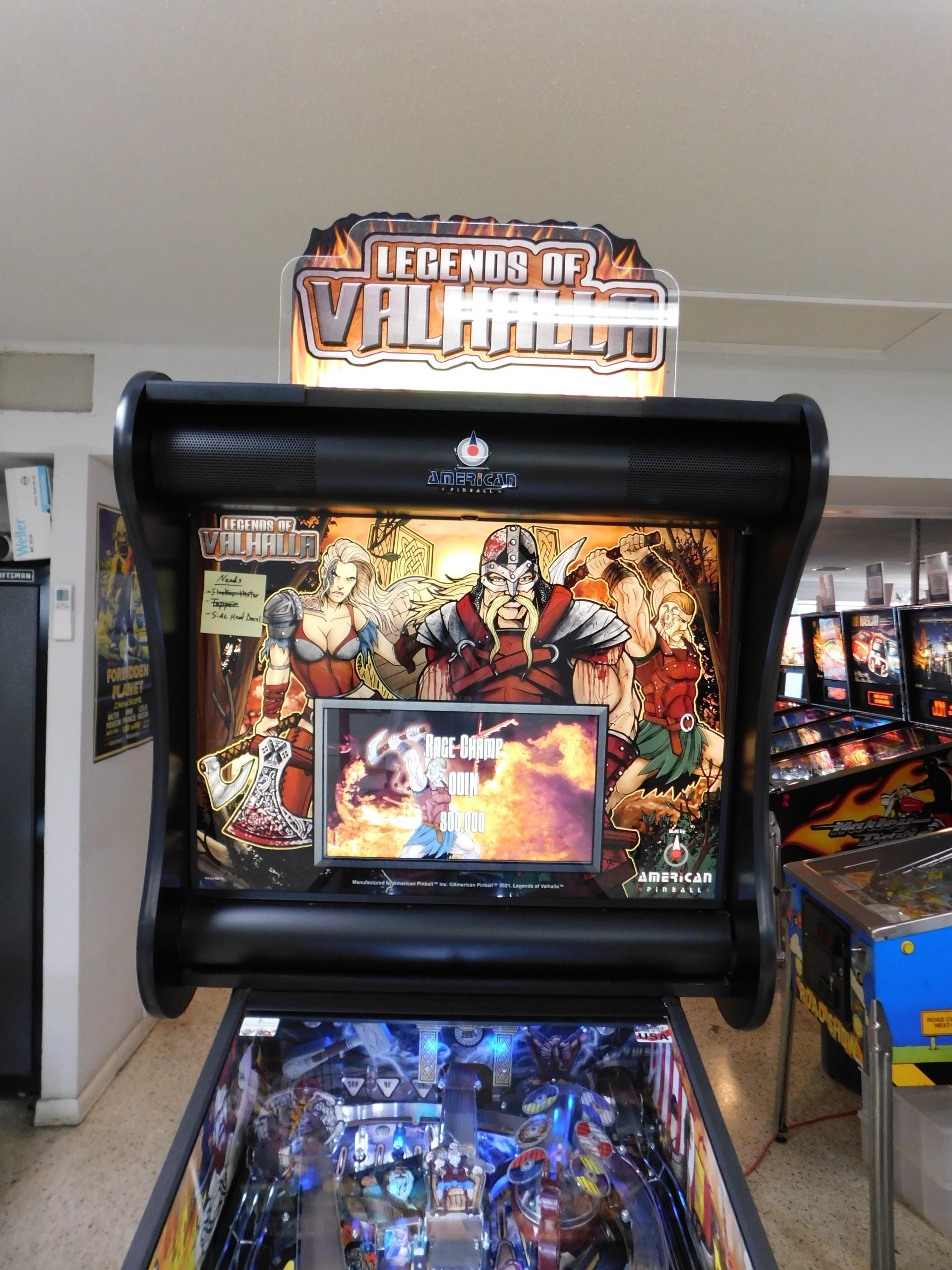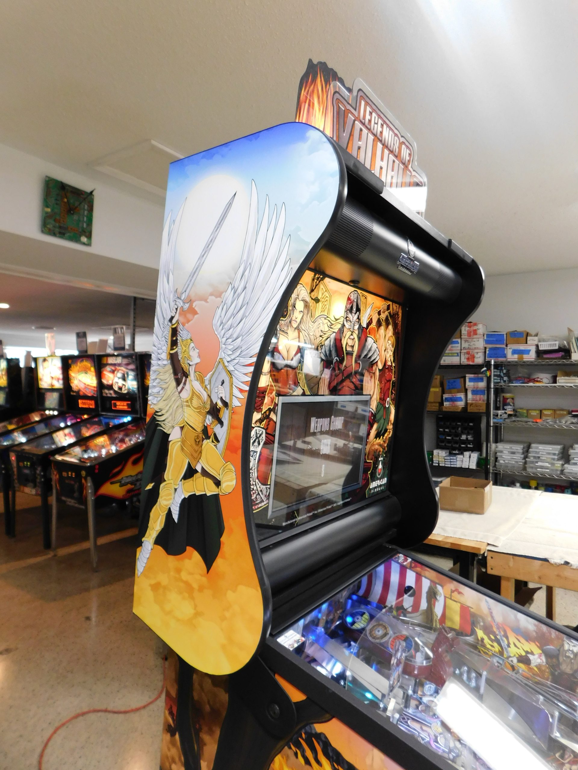 2022 American Pinball Legends of Valhalla (#1) (Classic Edition) (6 ball Multi-ball) (Shaker motor installed, Side art blade decals added, illuminated topper, 4 stereo speakers plus 8” cabinet subwoofer, Interactive Thor’s Hammer, Two under playfield magnets, New side head decals (outside), Upgraded to the latest game code)