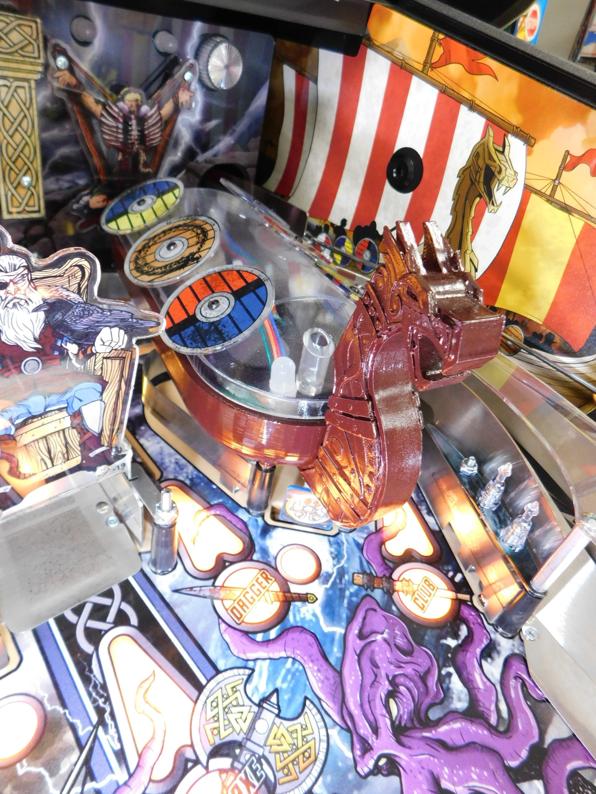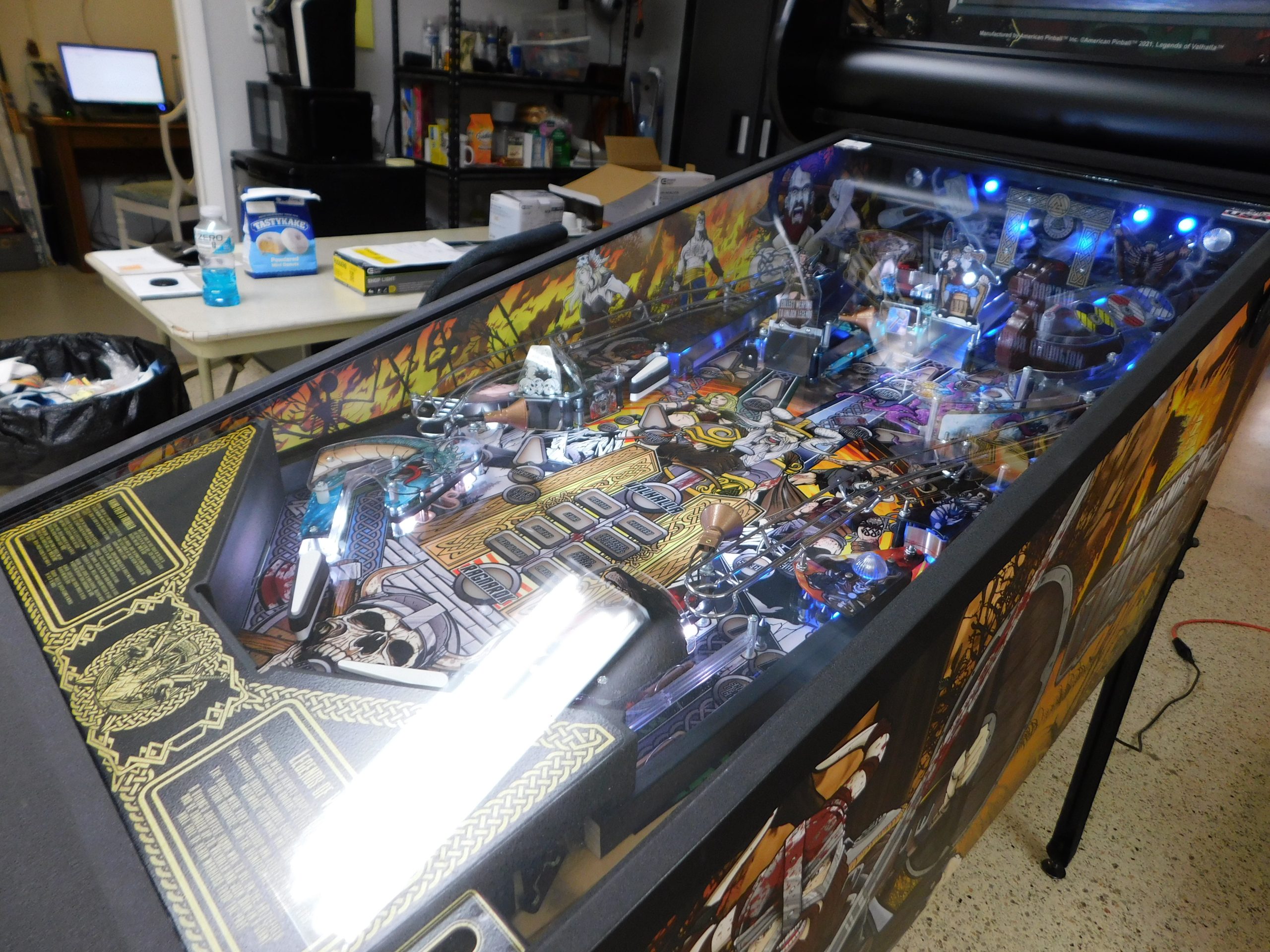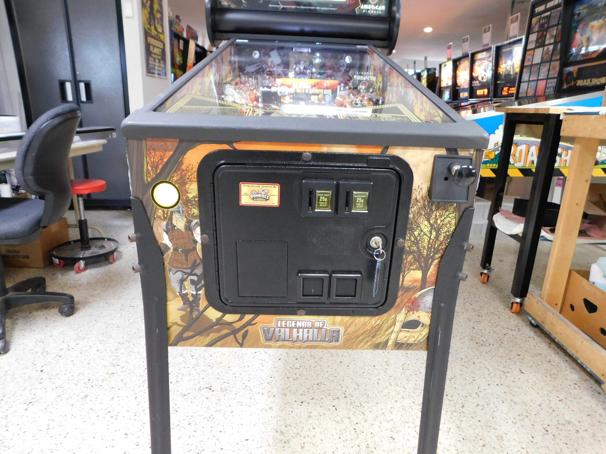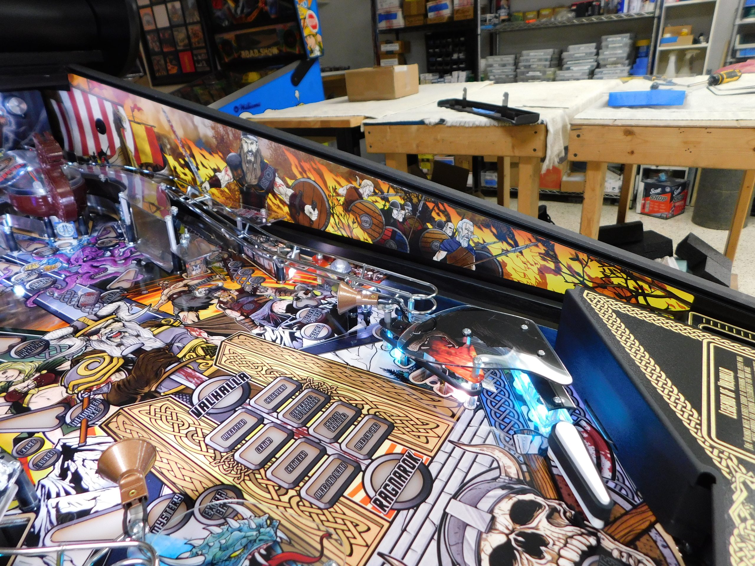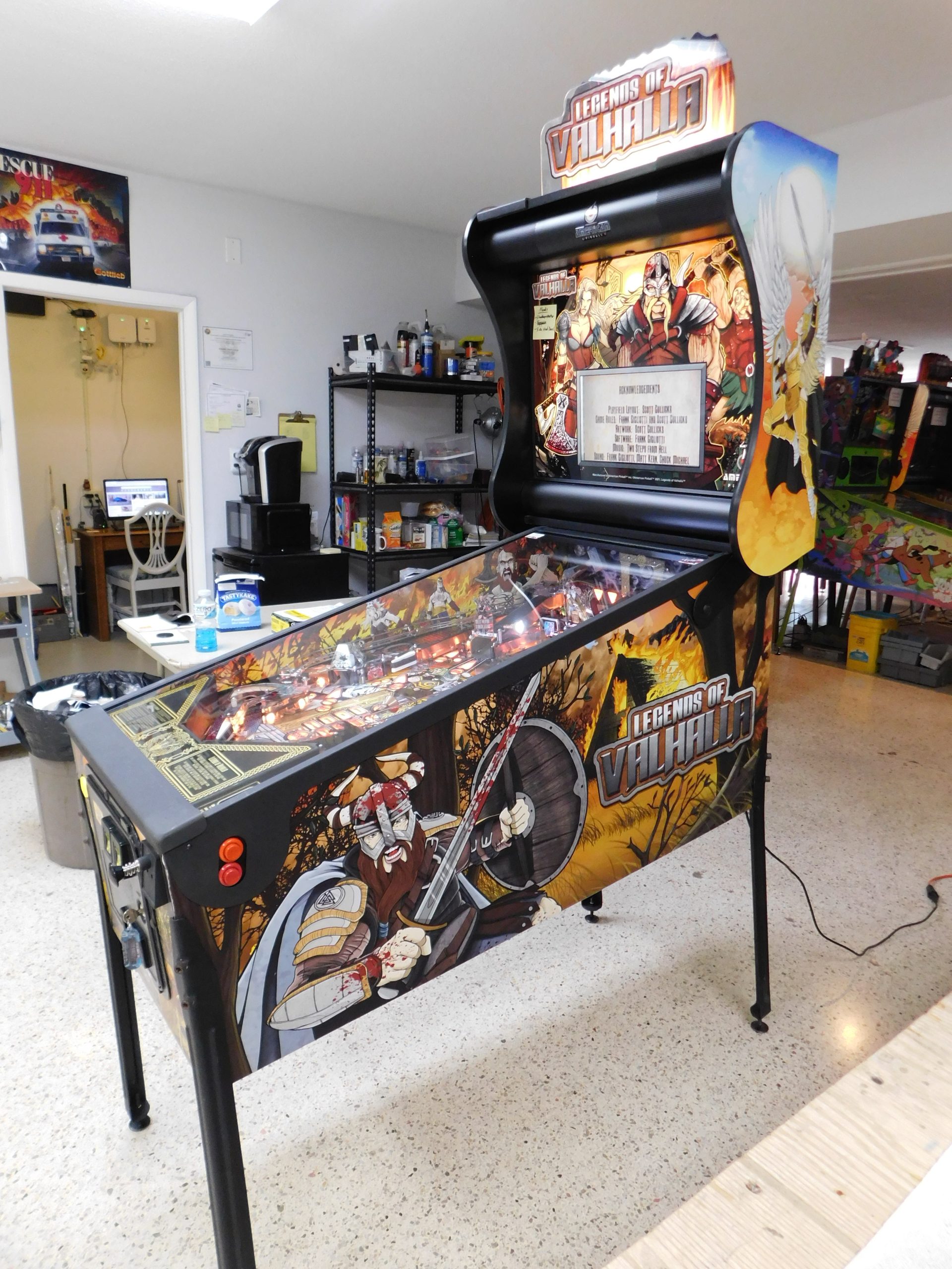 2022 American Pinball Legends of Valhalla (#1) (Classic Edition) (6 ball Multi-ball) (Shaker motor installed, Side art blade decals added, illuminated topper, 4 stereo speakers plus 8” cabinet subwoofer, Interactive Thor’s Hammer, Two under playfield magnets, New side head decals (outside), Upgraded to the latest game code)