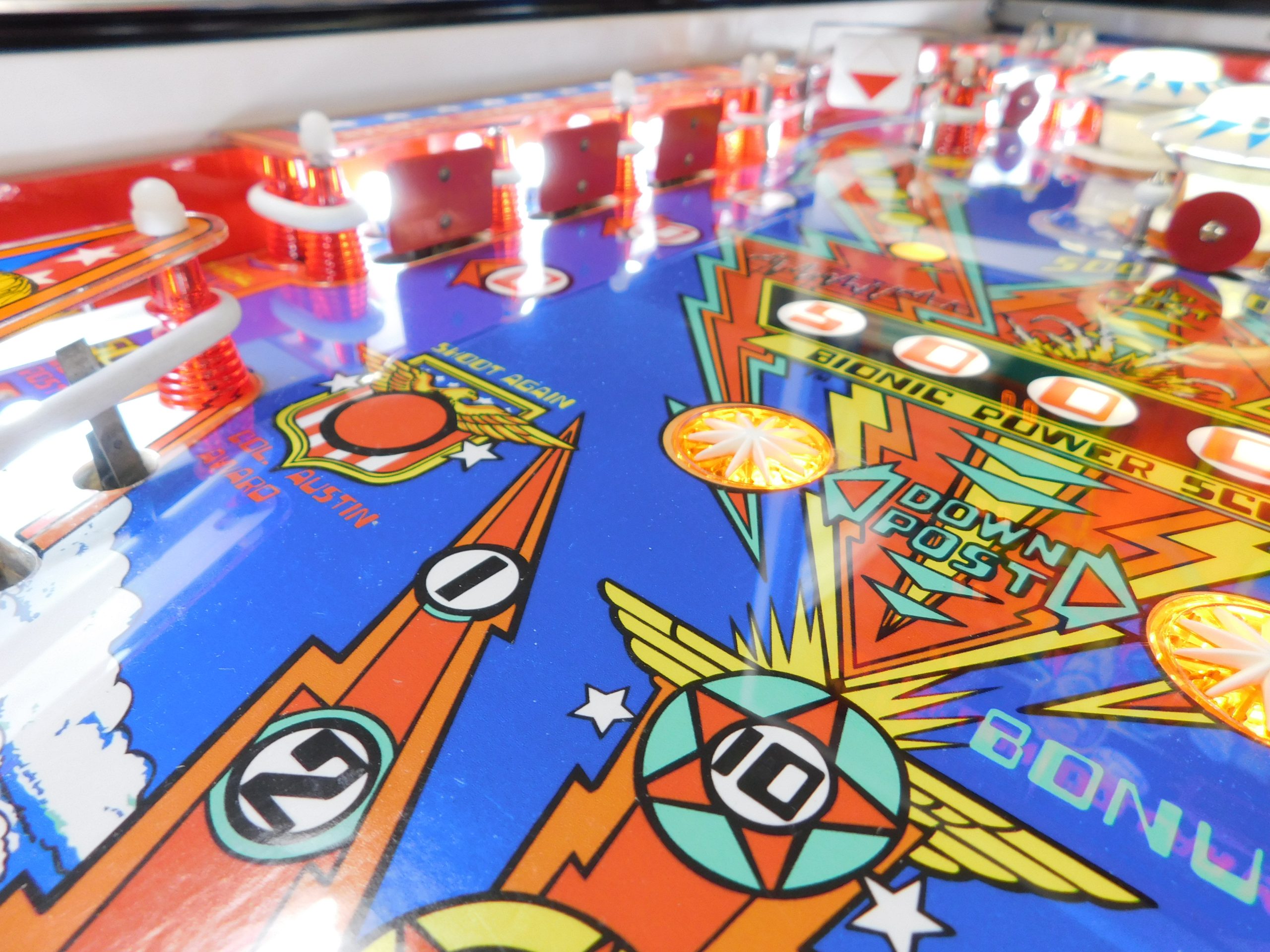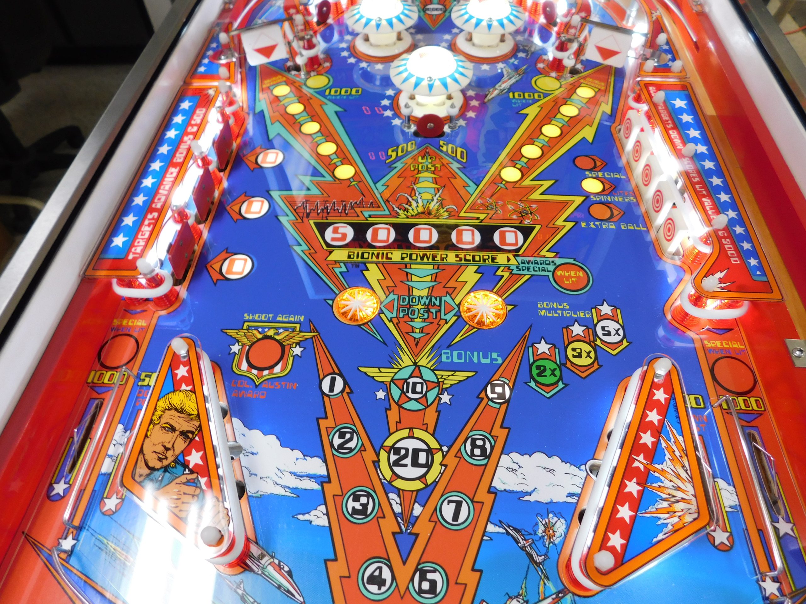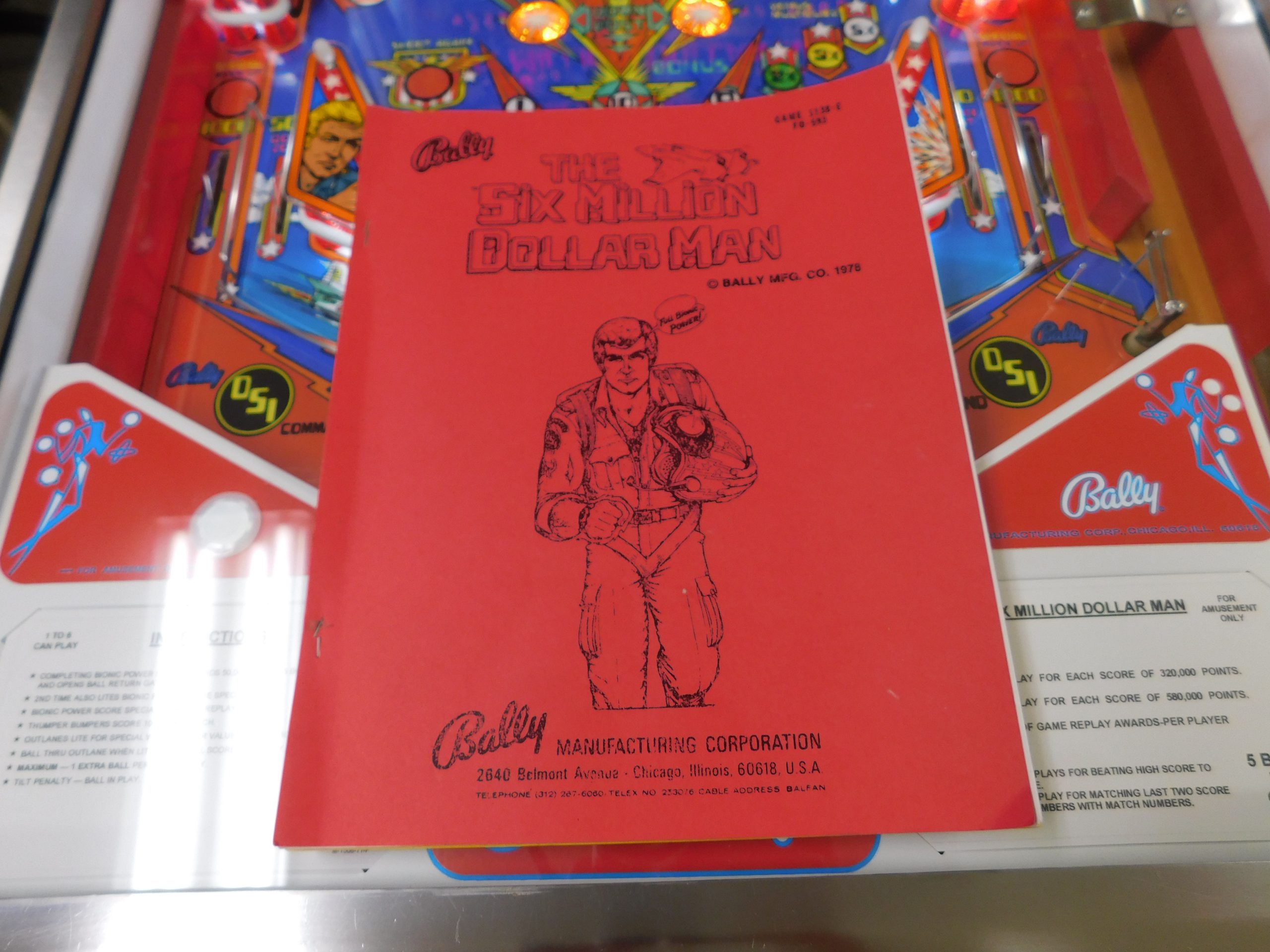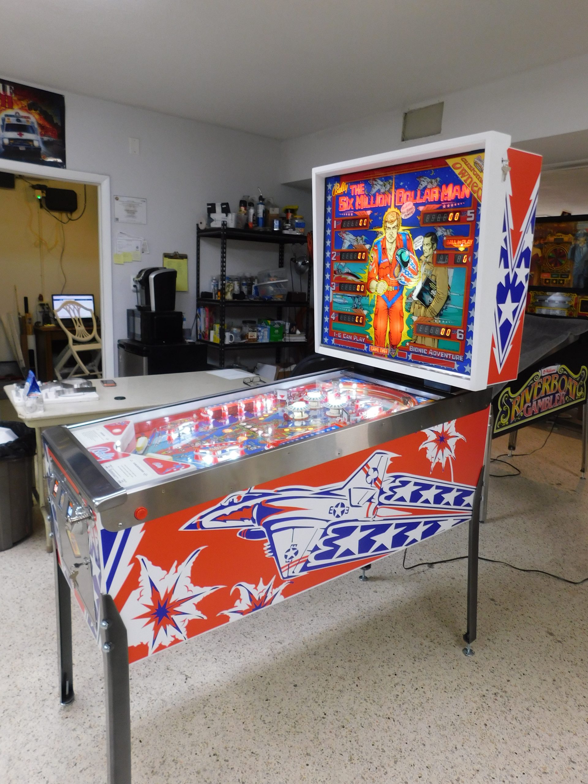 CUSTOMER RESTORATION – 1978 Bally Six million Dollar Man (#7) (New cabinet decals, playfield overlay, clear playfield protector, new MPU, new legs)