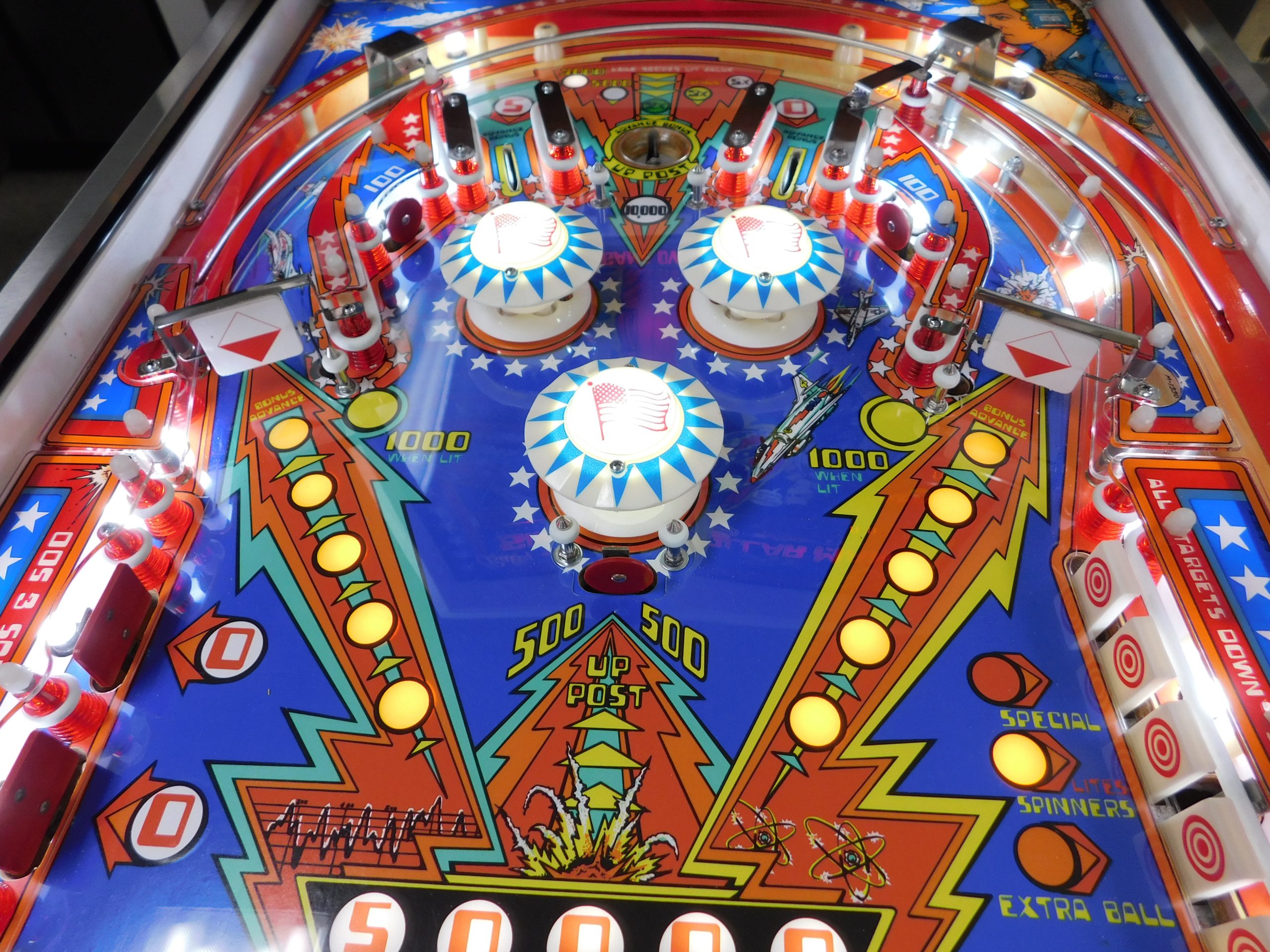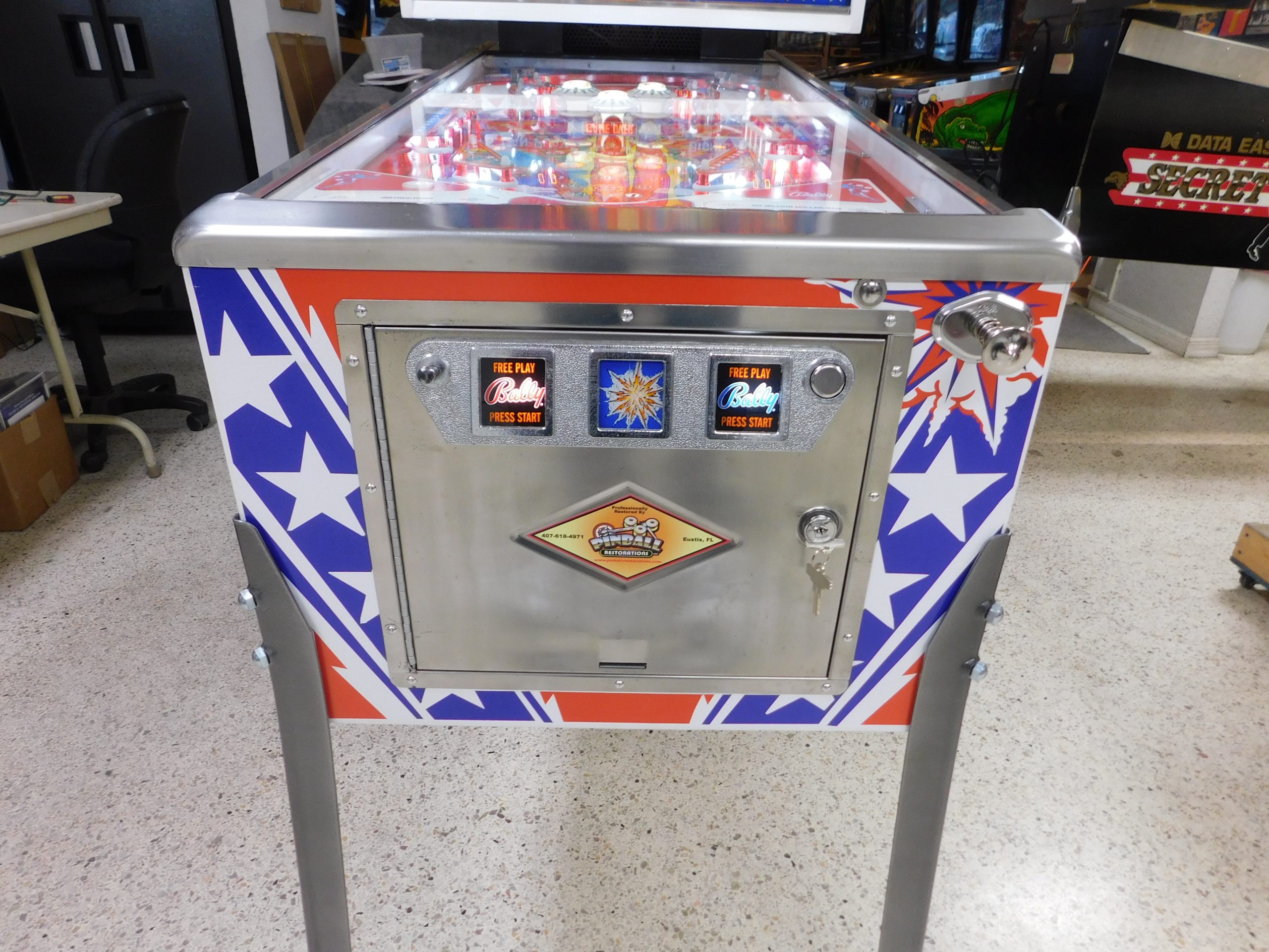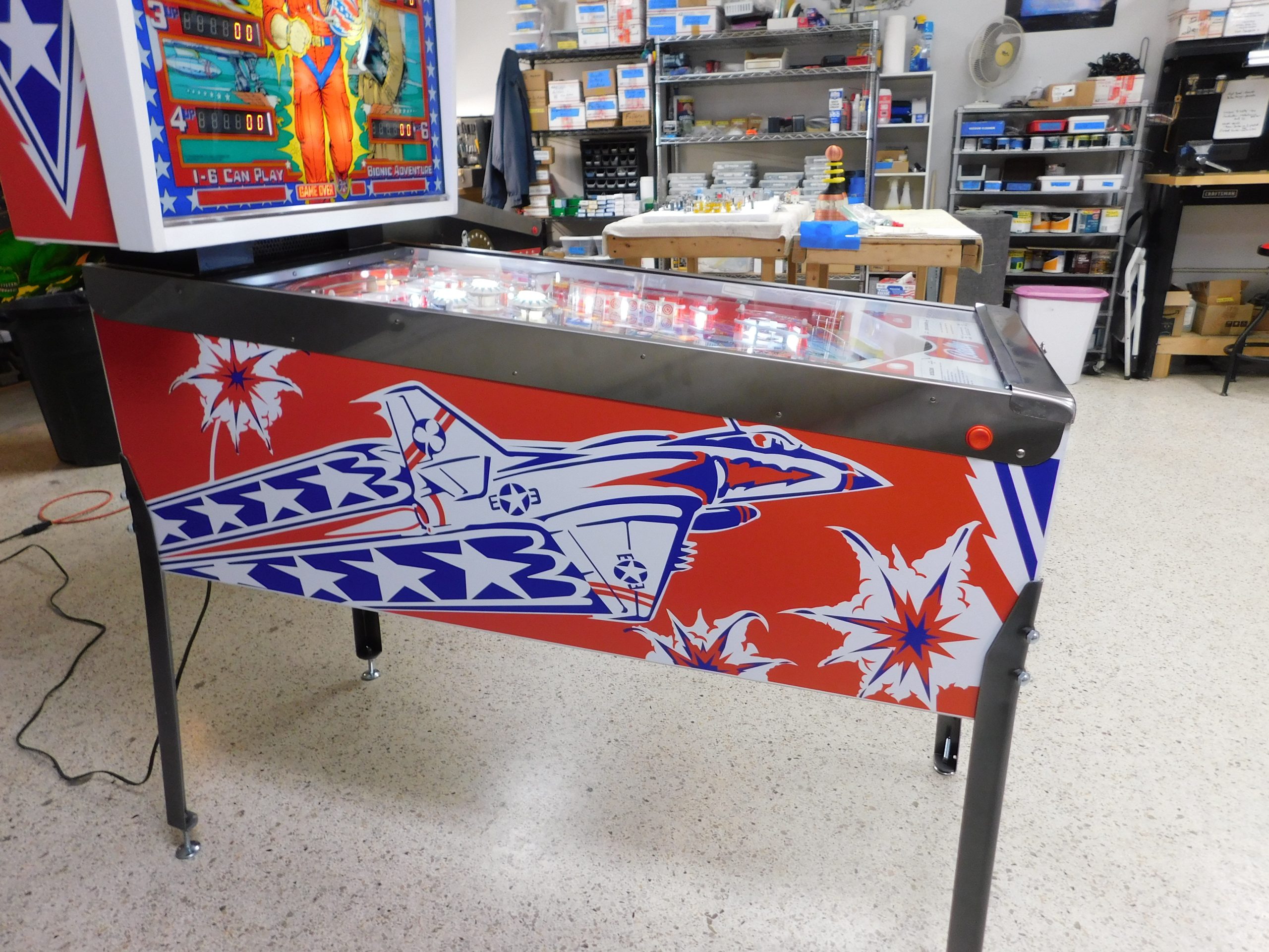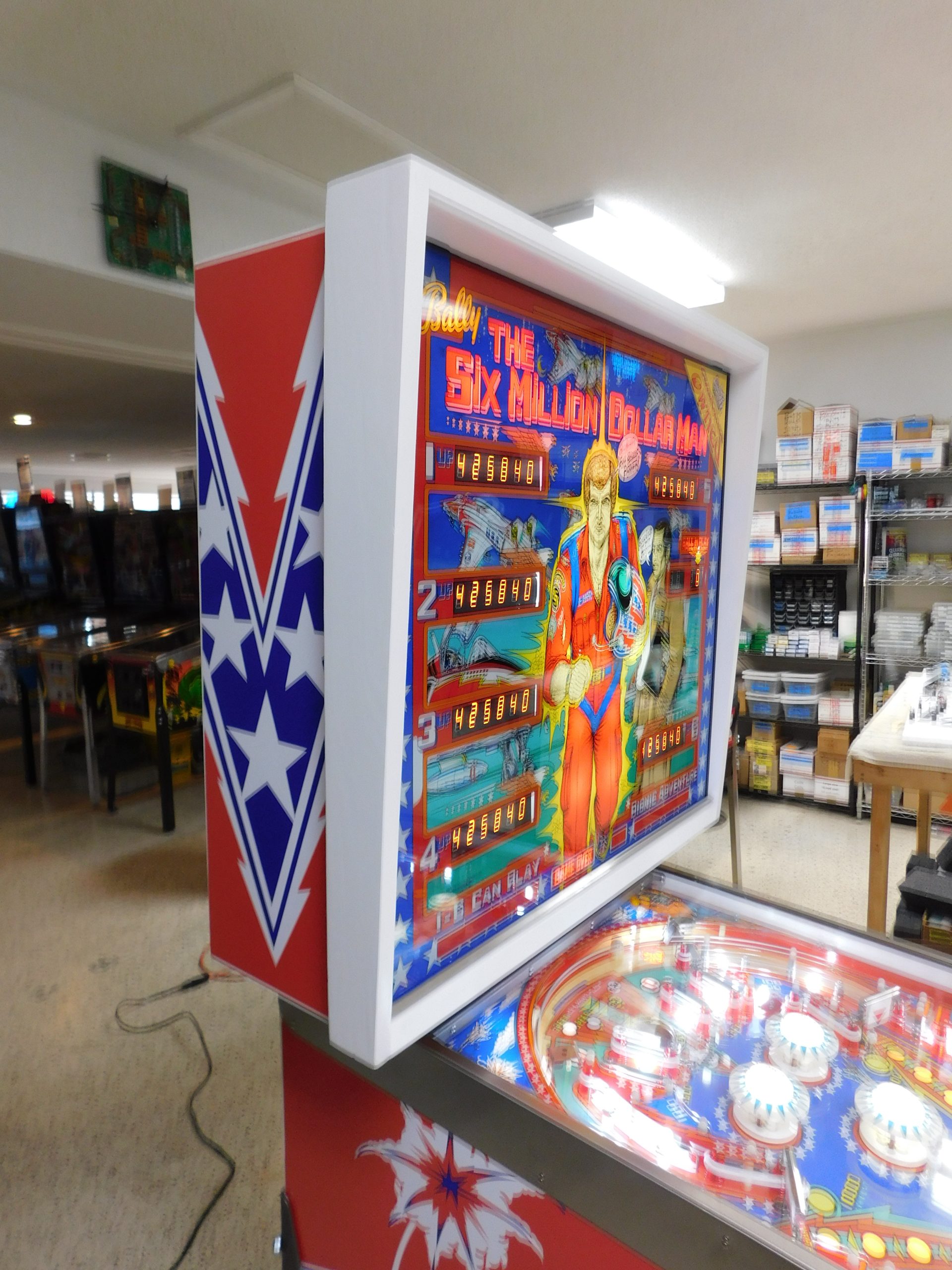 CUSTOMER RESTORATION – 1978 Bally Six million Dollar Man (#7) (New cabinet decals, playfield overlay, clear playfield protector, new MPU, new legs)